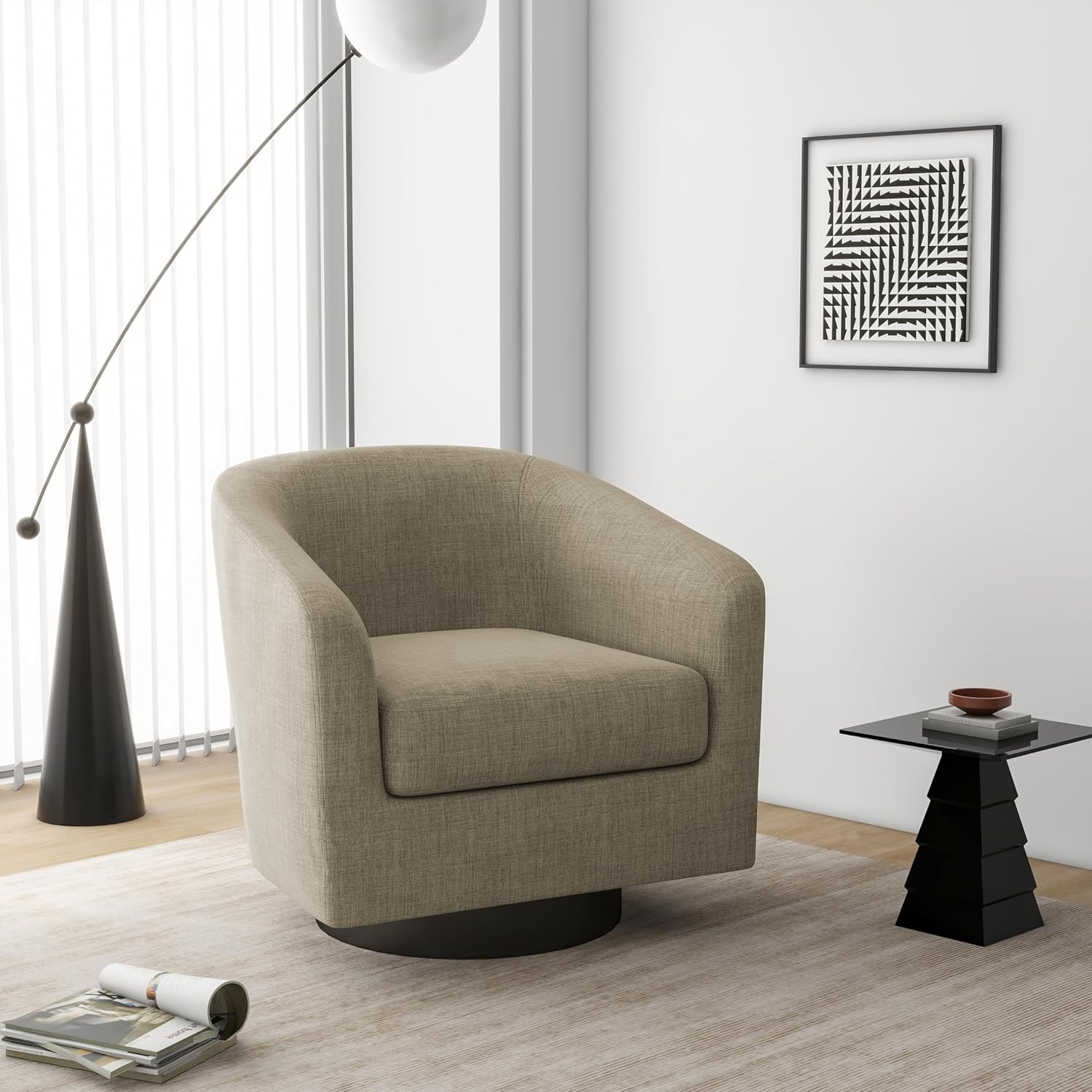 Swivel Barrel Accent Chair, Modern Round Linen Arm Chair for Living Room, Bedroom, Comfy Club Reading Chairs for Adults, Linen Fabric, Light Brown, Set of 2