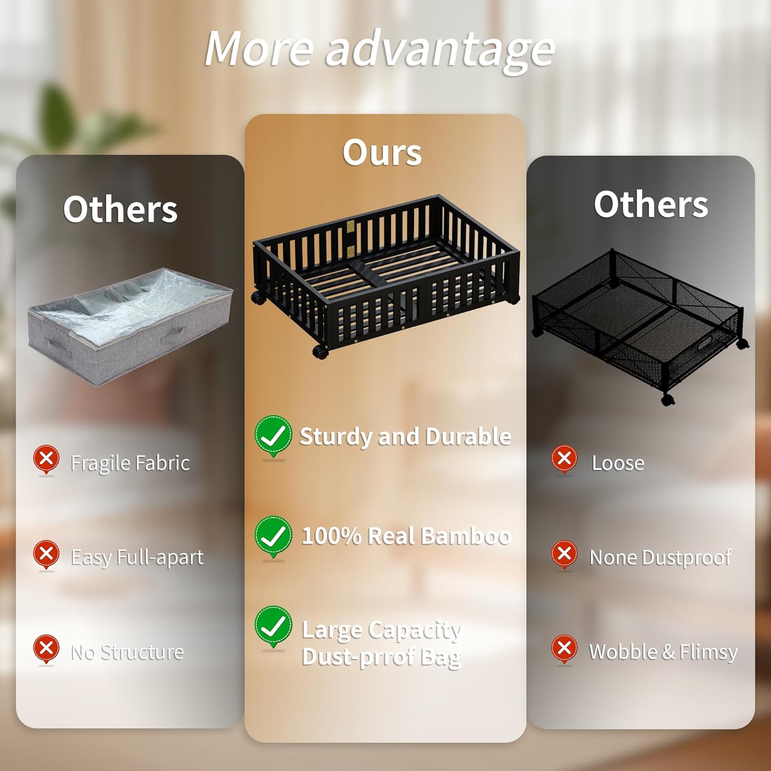 - Easy Assembly & Fit Most Beds: Simple assembly required, and the compact design fits under most standard beds. Transform the wasted space under your bed into a functional storage area with these bamboo under bed storage units.