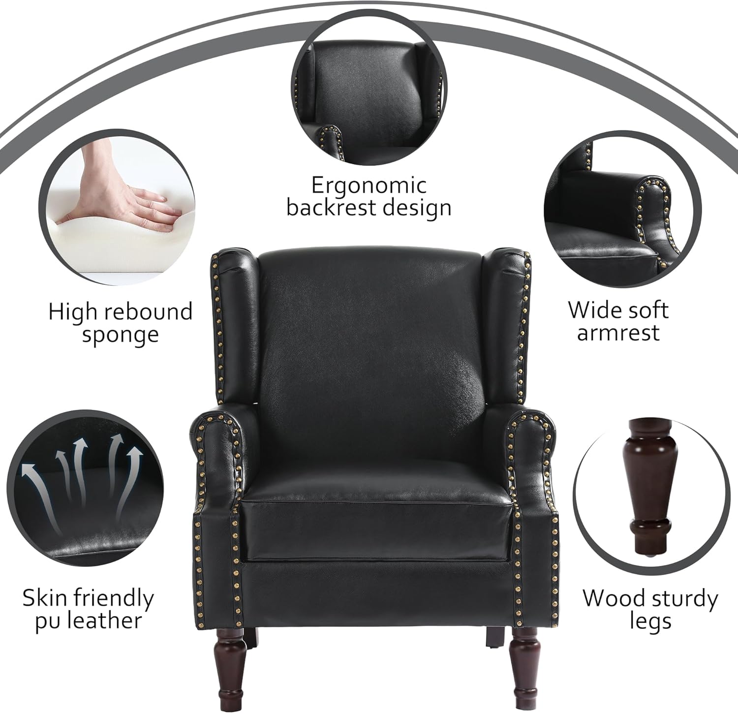 - Modern Design:This mid-century modern pushback chair features a classic wingback design with pu leather that adds a more upscale touch to the decor for visual enjoyment! Place it in your studio to enhance office comfort; by the fireplace for casual holiday time; or in your bedroom for cozy lounging