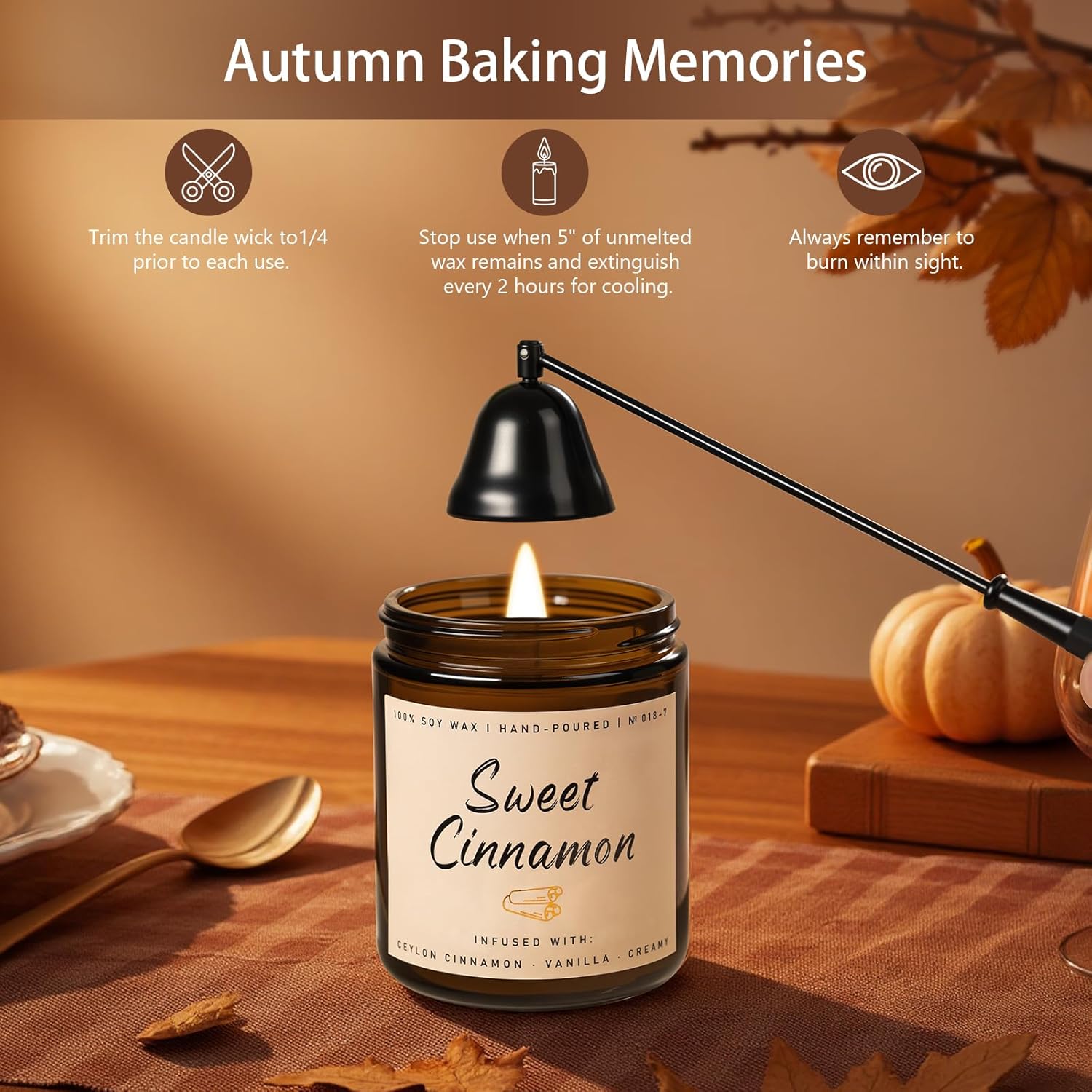 - ✨Celebrate Autumn Moments: Use our Sweet Cinnamon Scented Candle for Autumn during family gatherings and cozy nights in. As you celebrate fall, let the inviting scent transform your space, creating a welcoming atmosphere for friends and loved ones alike.