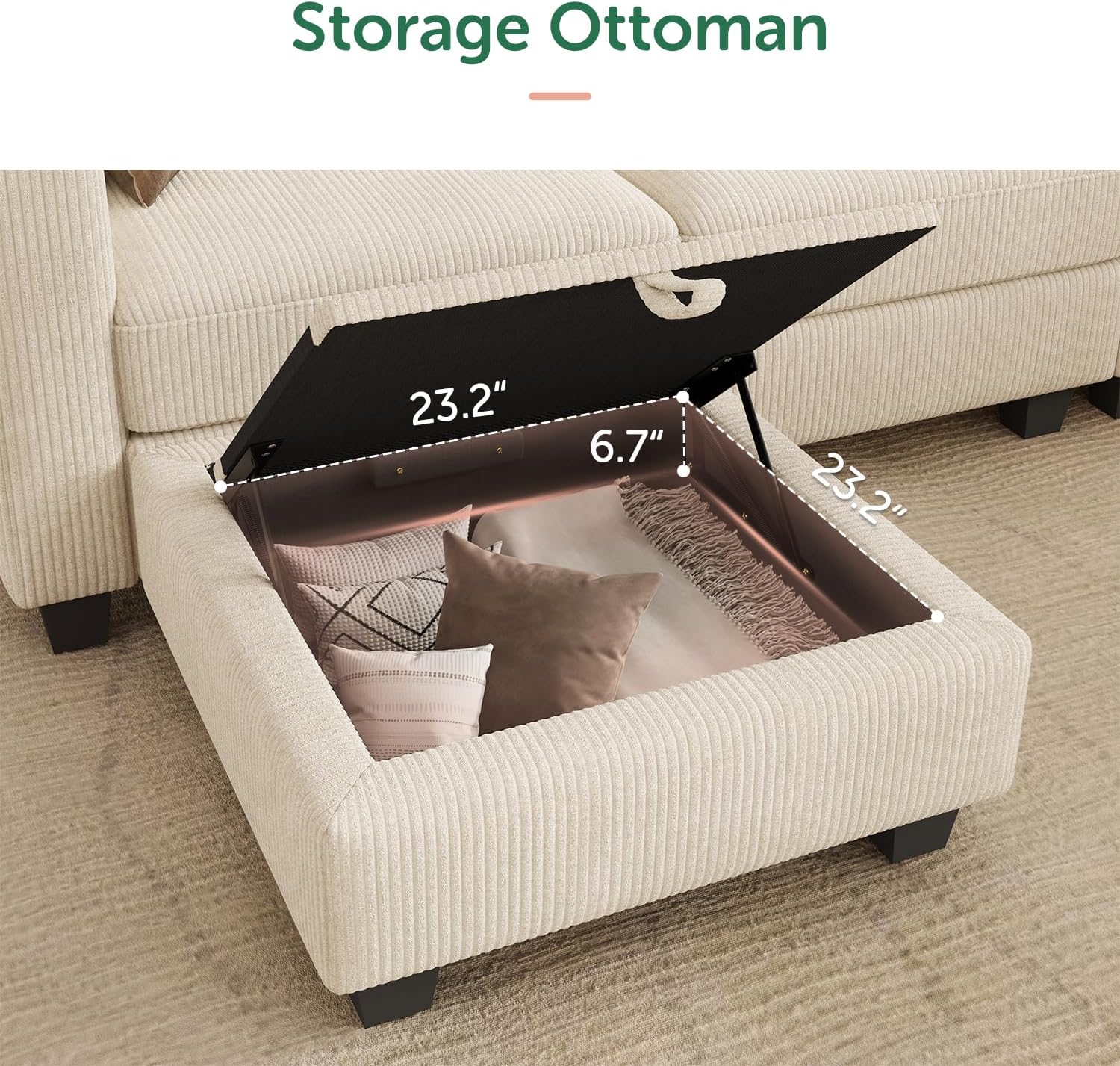 HONBAY Corduroy Modular Sectional Couch with Storage L-Shaped Sectional Couches for Living Room 6 Seater Modular Sectional Sofa, Beige
