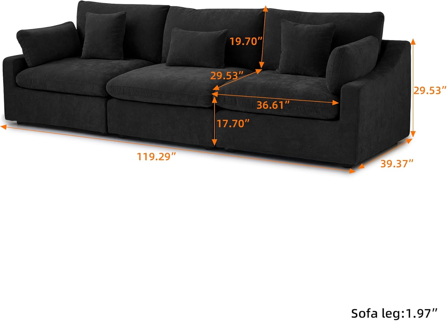 - ⛅[Size Information] Overall Size: 119.29"L x 39.37"W x 29.53"H. The cushion cover, backrest cover, and frame cover of the sofa can all be removeable and washable. You can easily keep the sofa clean.