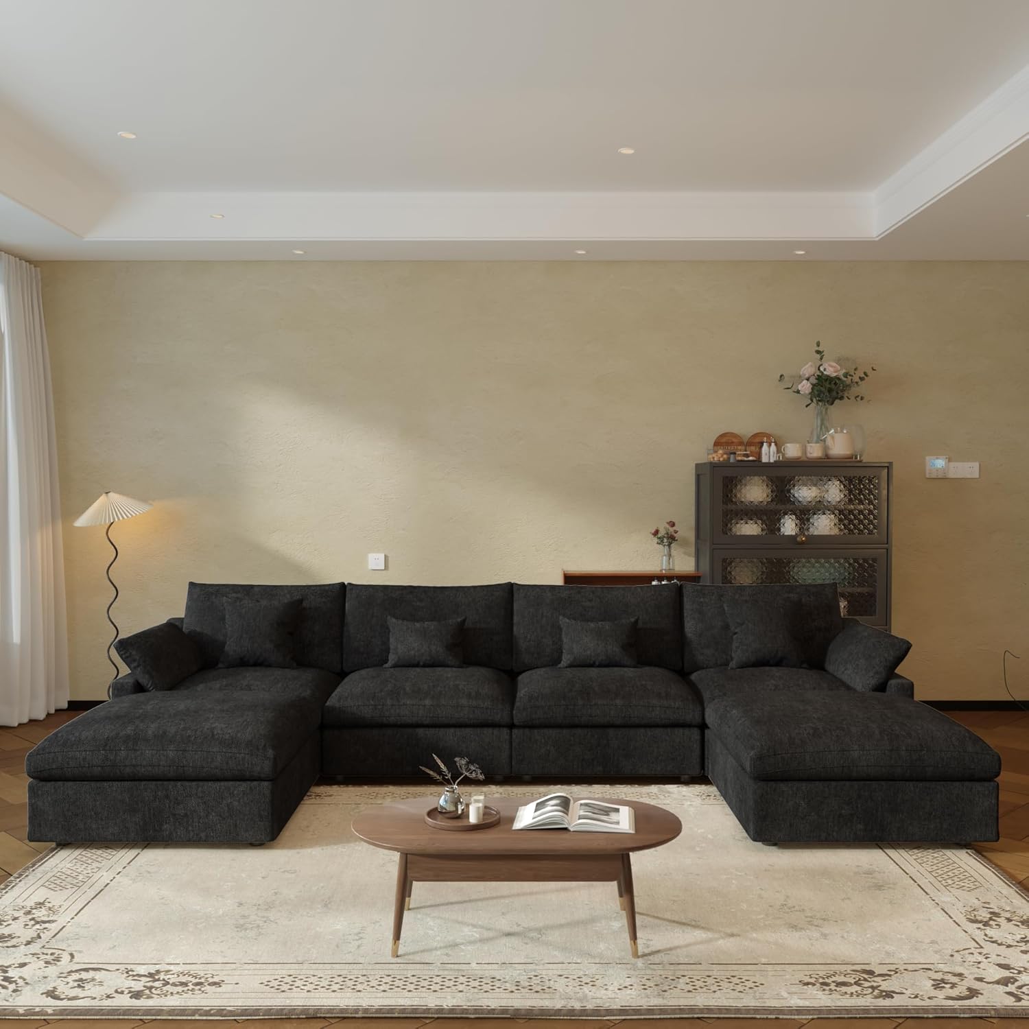 JACH U-Shaped Sectional Couches for Living Room, Cloud Sectional Couch with Deep Seat, 155.9" Modular Sofa with Chaise, Covers Removeable & Washable, Sofas Furniture for Living Room, Black