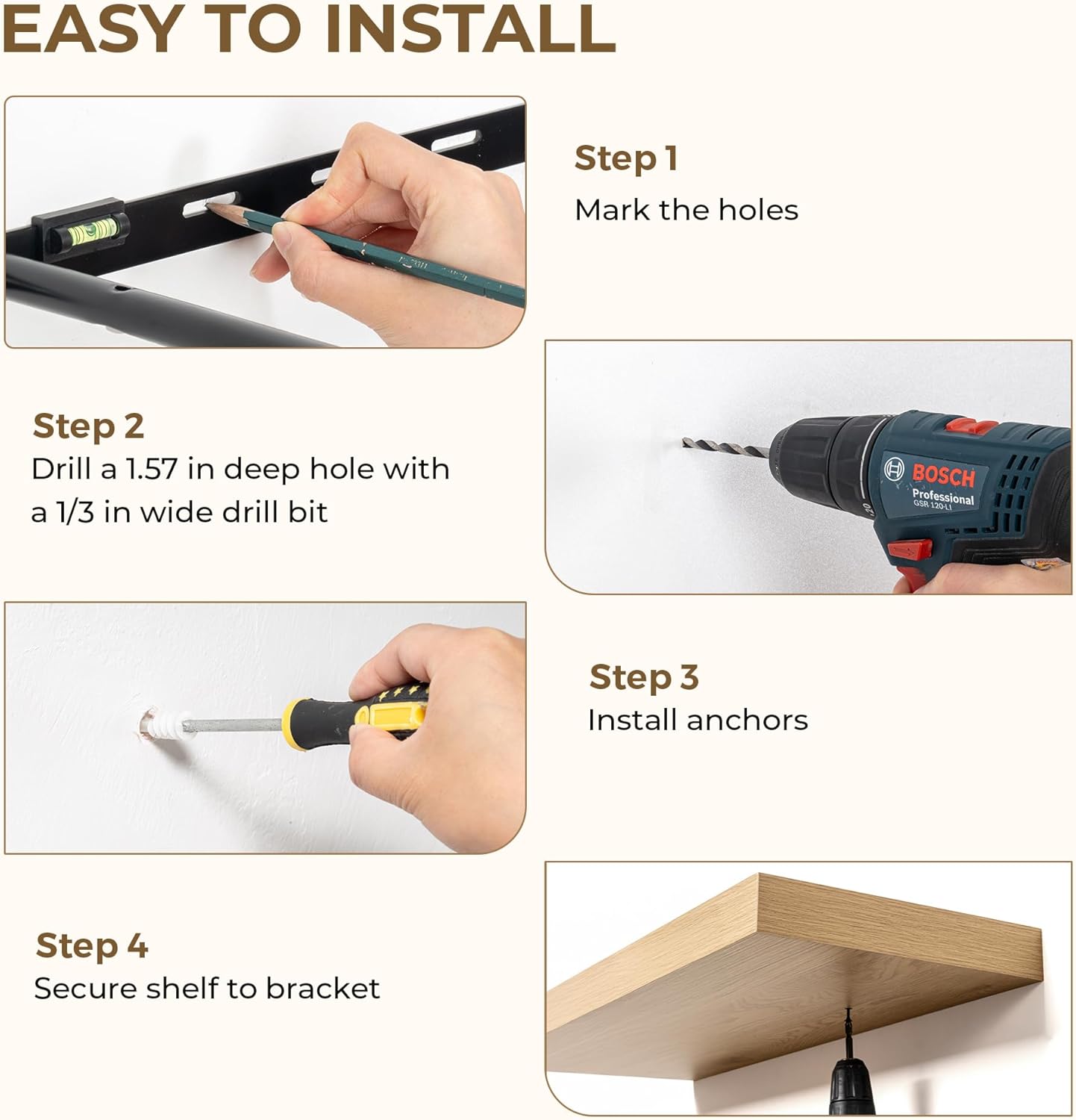 - Sturdy & Secure design: These 55-inch floating shelves feature a durable, concealed mounting bracket that offers reliable support for your belongings. Engineered for hassle-free and stable installation, each shelf includes all the required hardware to ensure a strong, wobble-free holdâperfect for showcasing your favorite decor, photos, or everyday items with confidence and style.