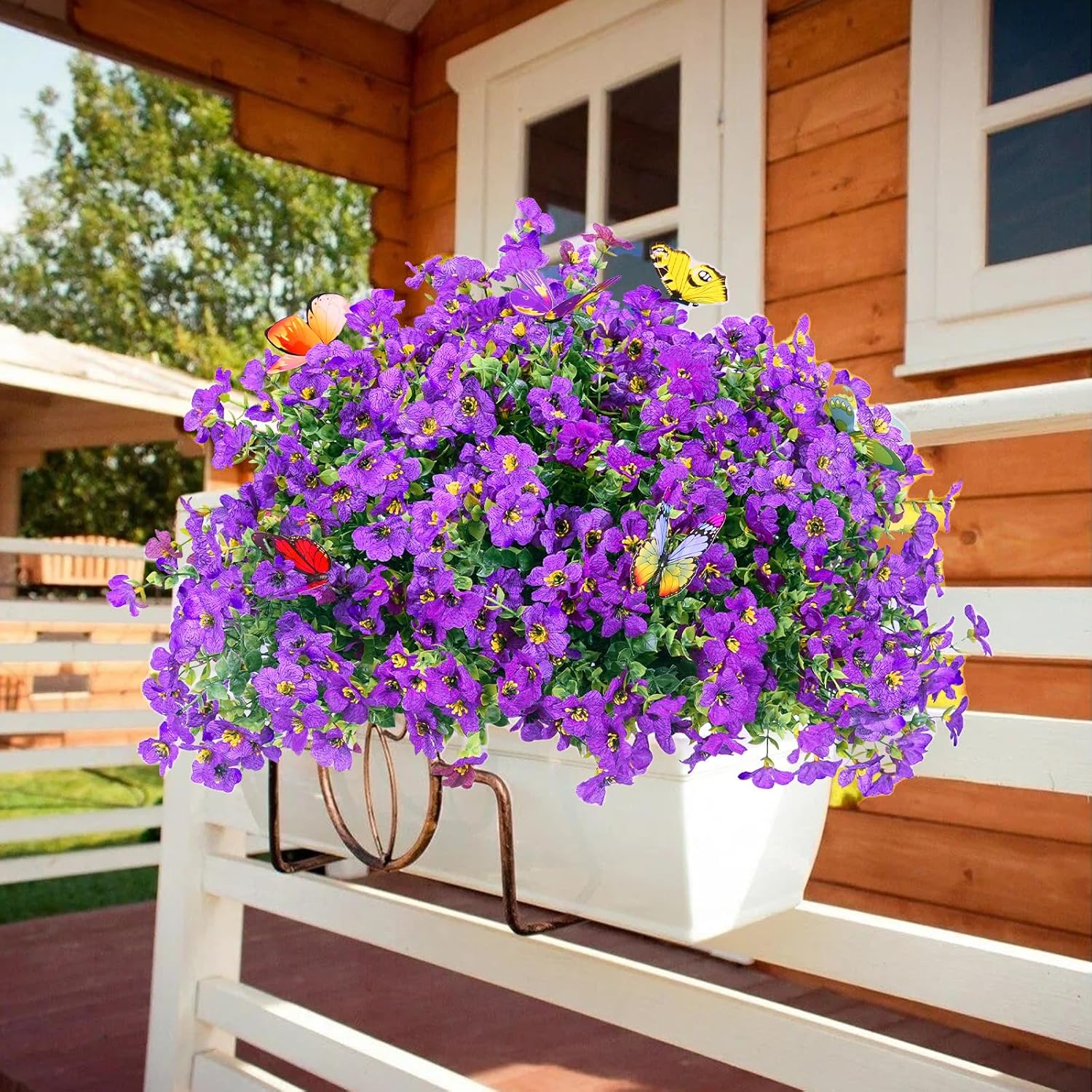 20 Bundles Artificial Flowers for Outdoors with 6 Faux Butterflies, UV Resistant Fake Flowers with Eucalyptus Leaves, Artificial Plants Outdoor for Patio Garden Porch Home Decor (Purple)