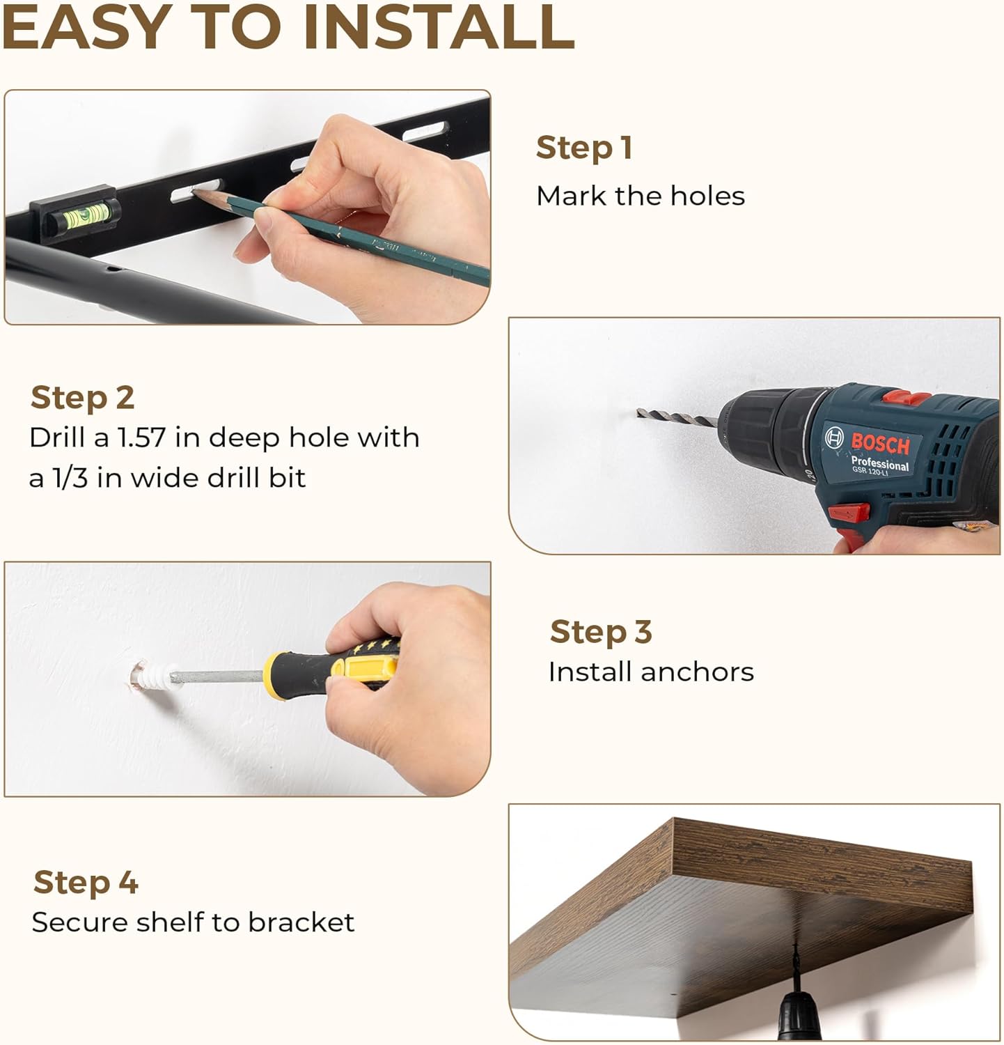 - Sturdy & Secure design: These 32-inch floating shelves feature a durable, concealed mounting bracket that offers reliable support for your belongings. Engineered for hassle-free and stable installation, each shelf includes all the required hardware to ensure a strong, wobble-free holdâperfect for showcasing your favorite decor, photos, or everyday items with confidence and style.