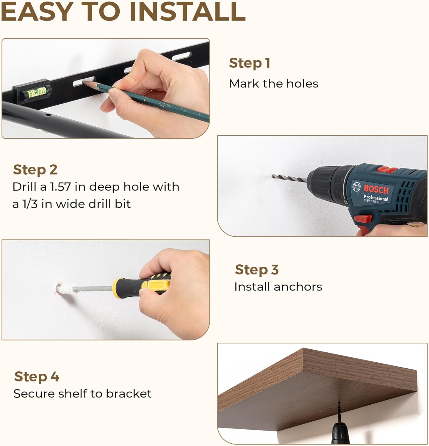 - Maximize Your Space: Perfect for small apartments, kitchens, and cozy living areas, these floating wall shelves help free up floor space while adding style. They create the illusion of a more open room, offering a smart way to display plants, collectibles, and dĂŠcor without compromising on space.