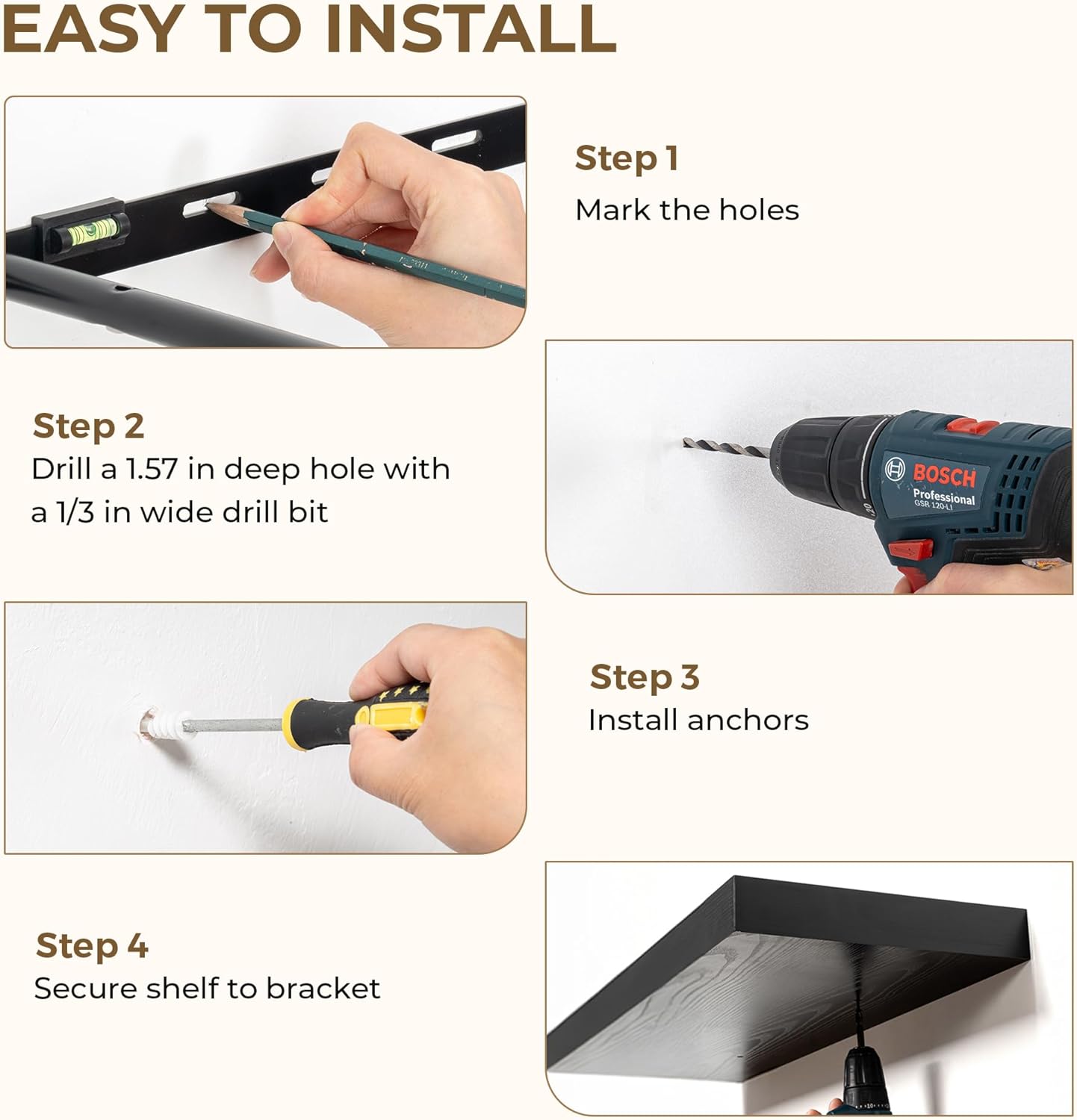 - Sturdy & Secure design: These 55-inch floating shelves feature a durable, concealed mounting bracket that offers reliable support for your belongings. Engineered for hassle-free and stable installation, each shelf includes all the required hardware to ensure a strong, wobble-free hold—perfect for showcasing your favorite decor, photos, or everyday items with confidence and style.