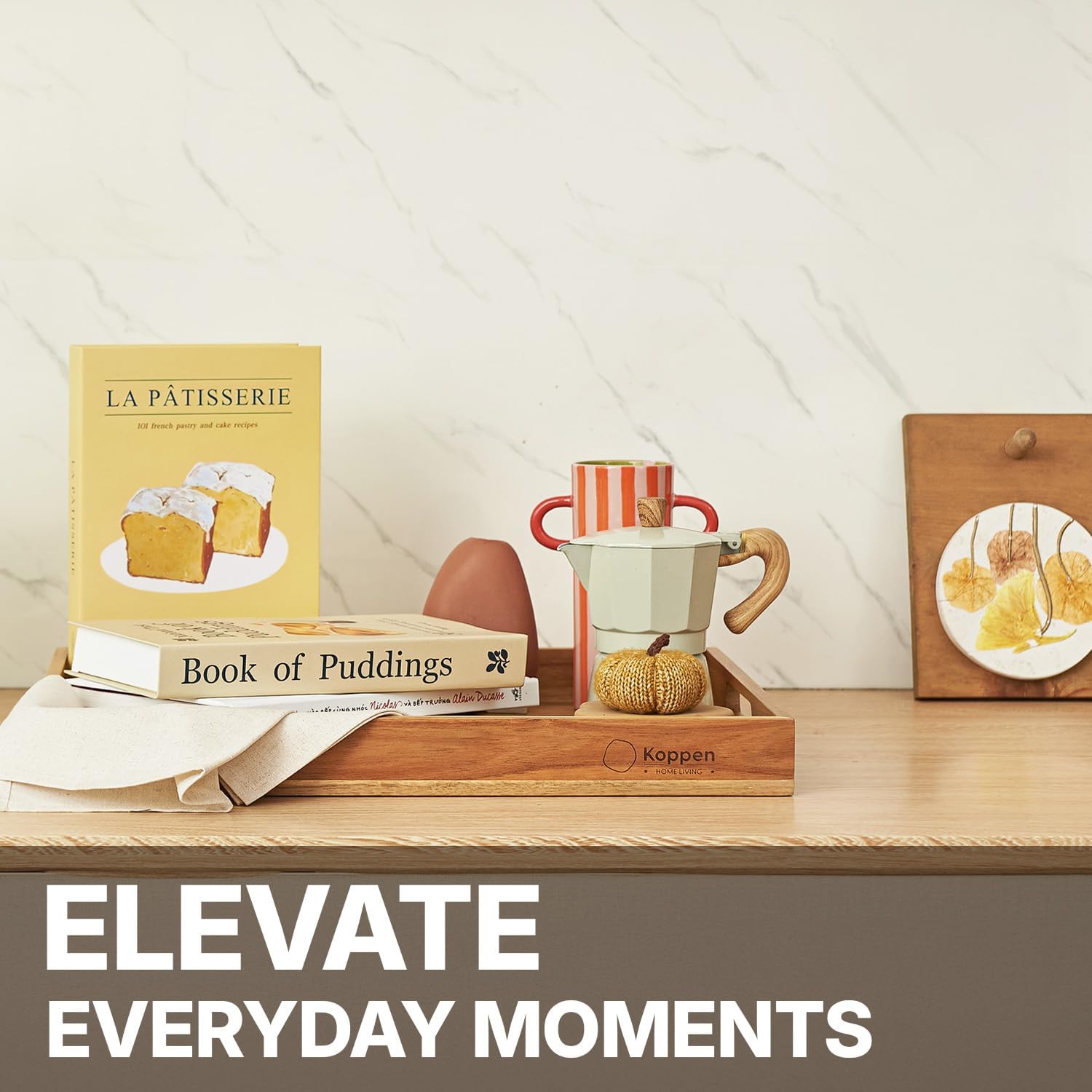 - [VERSATILE ACROSS SPACES AND OCCASIONS]: Whether you’re serving breakfast in bed, styling a coffee table, organizing your countertop, or setting up a charming outdoor picnic—this tray does it all with quiet elegance. Its timeless design moves effortlessly between rustic kitchens, modern living rooms, or cozy patios, making it as functional as it is beautiful.