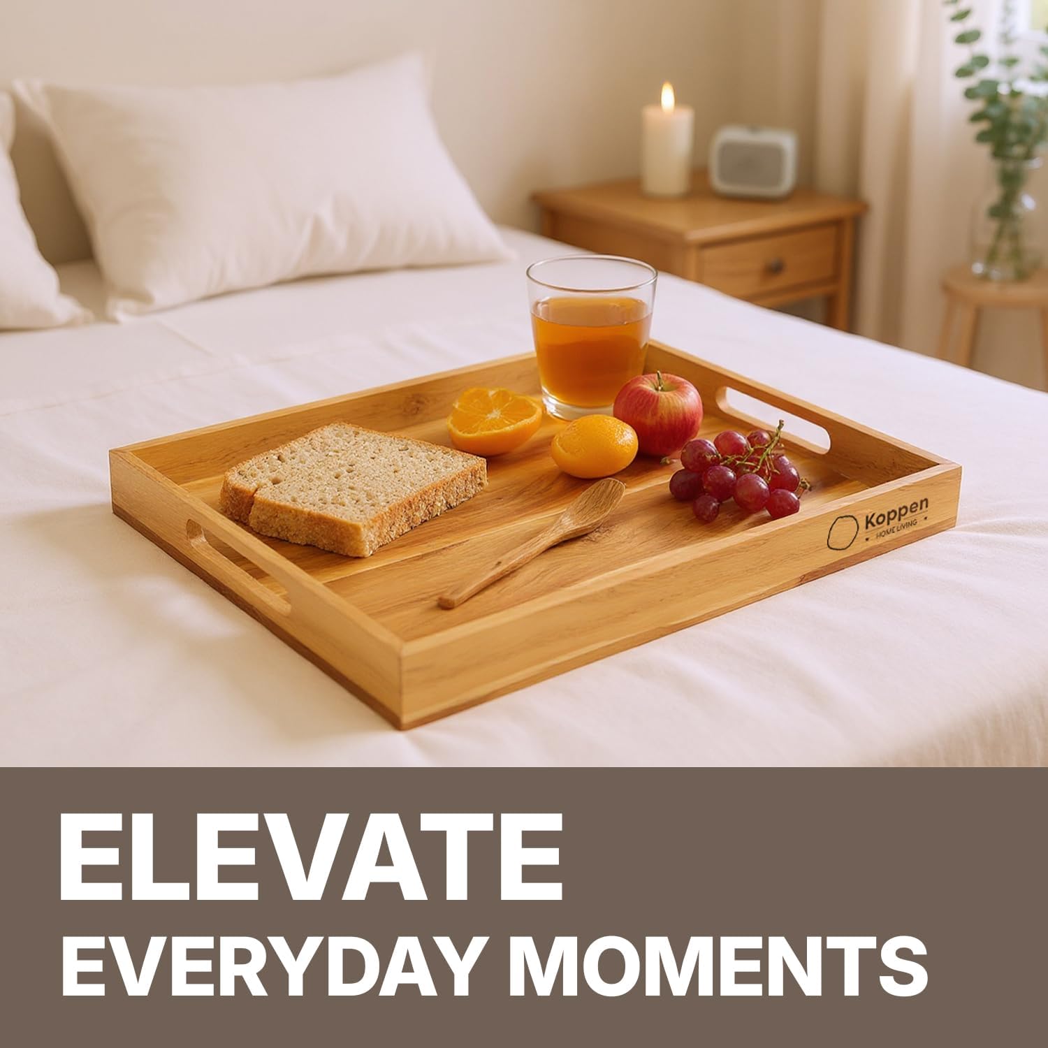 Koppen Acacia Wood Serving Tray with Handles, 17" x 13.86", Large Wooden Platter for Breakfast, Ottoman Tray for Party, Snacks, Fruit, Coffee Table, Living Room, Sofa, Bed, Outdoor