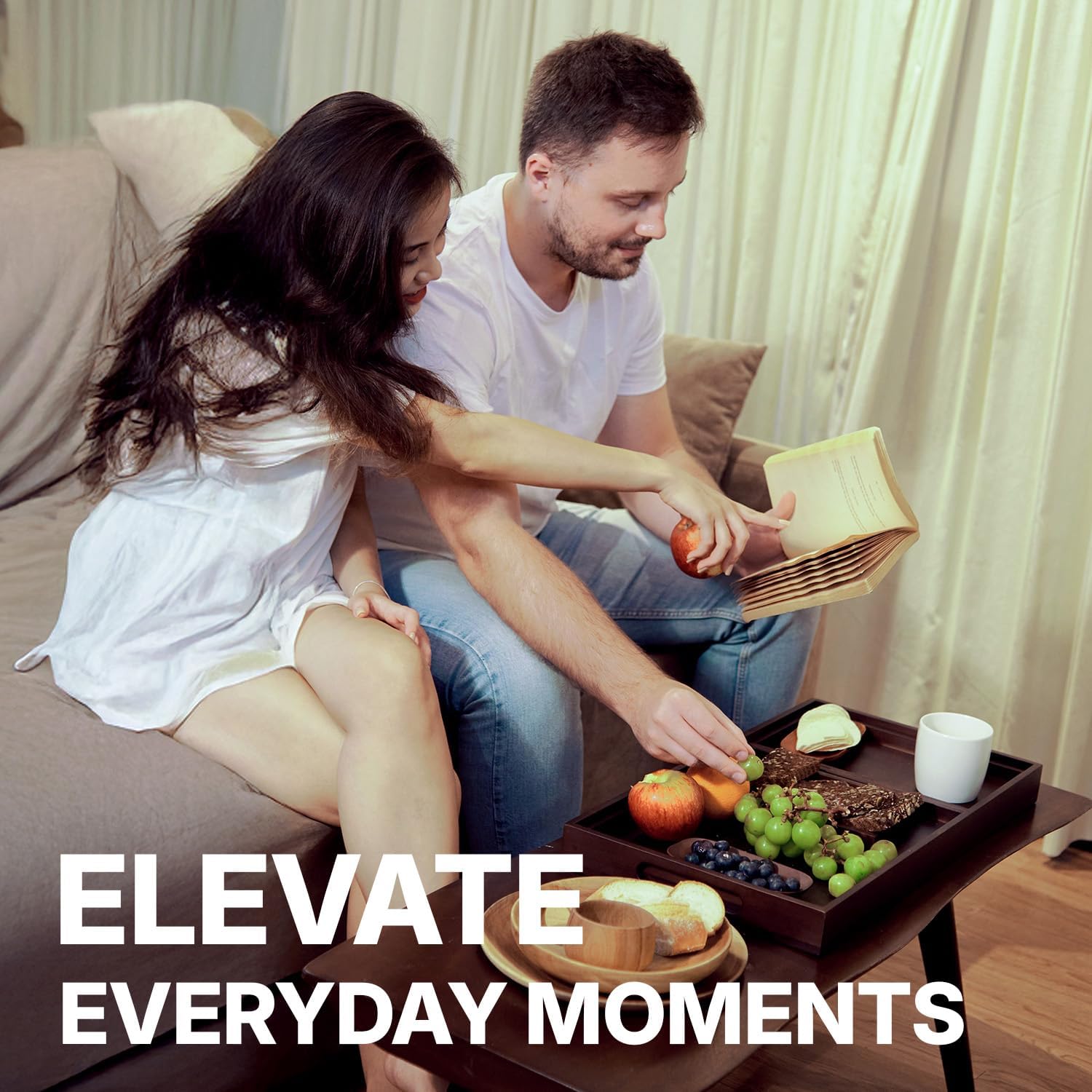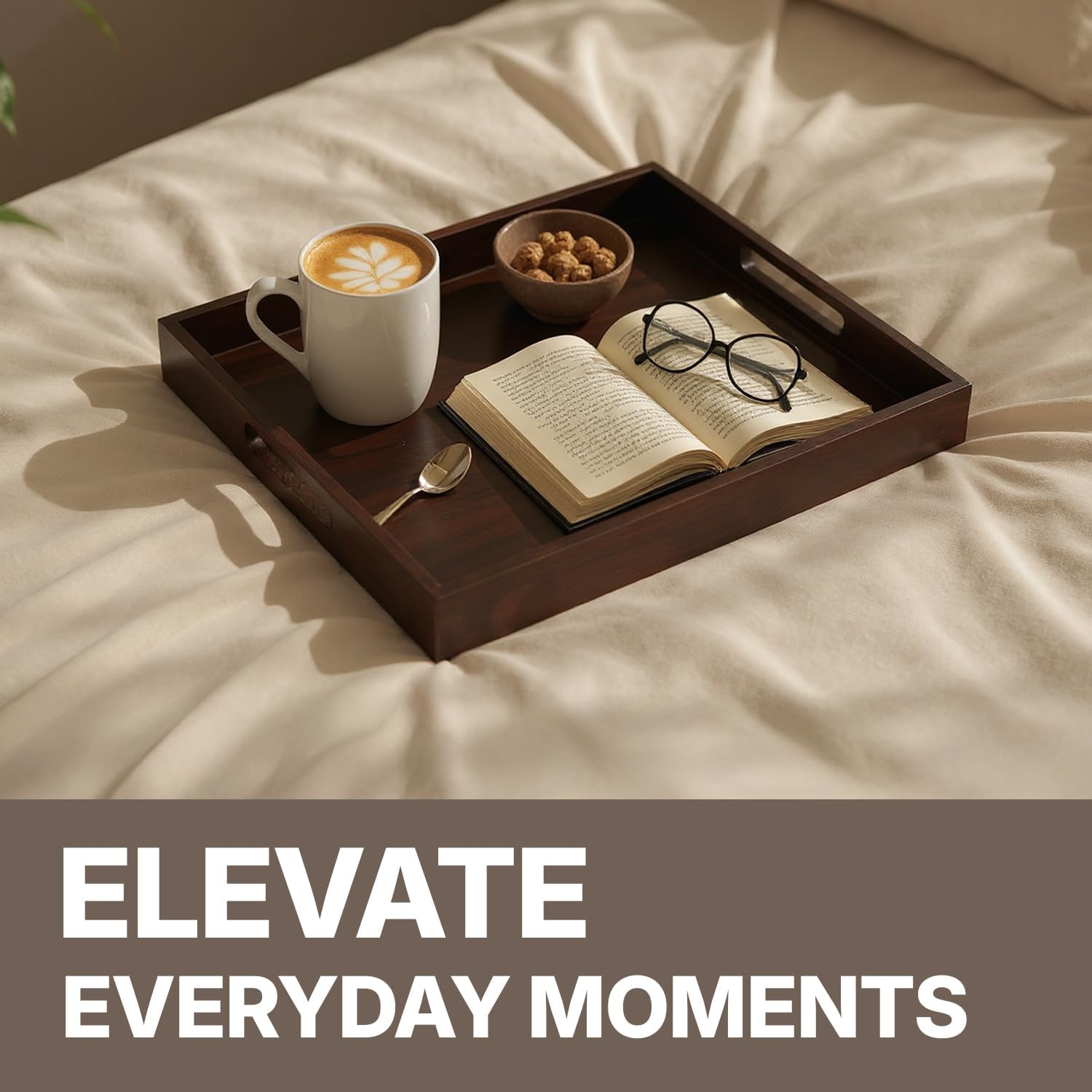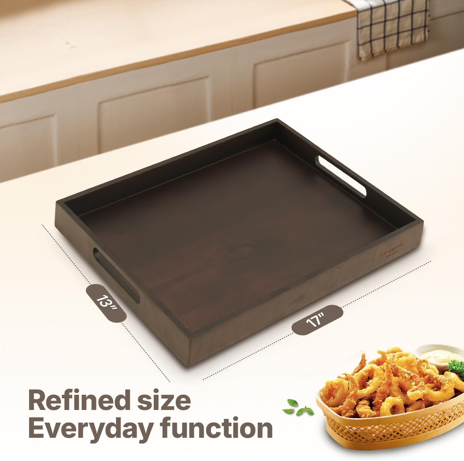 - [VERSATILE ACROSS SPACES AND OCCASIONS]: Whether you’re serving breakfast in bed, styling a coffee table, organizing your countertop, or setting up a charming outdoor picnic—this tray does it all with quiet elegance. Its timeless design moves effortlessly between rustic kitchens, modern living rooms, or cozy patios, making it as functional as it is beautiful.