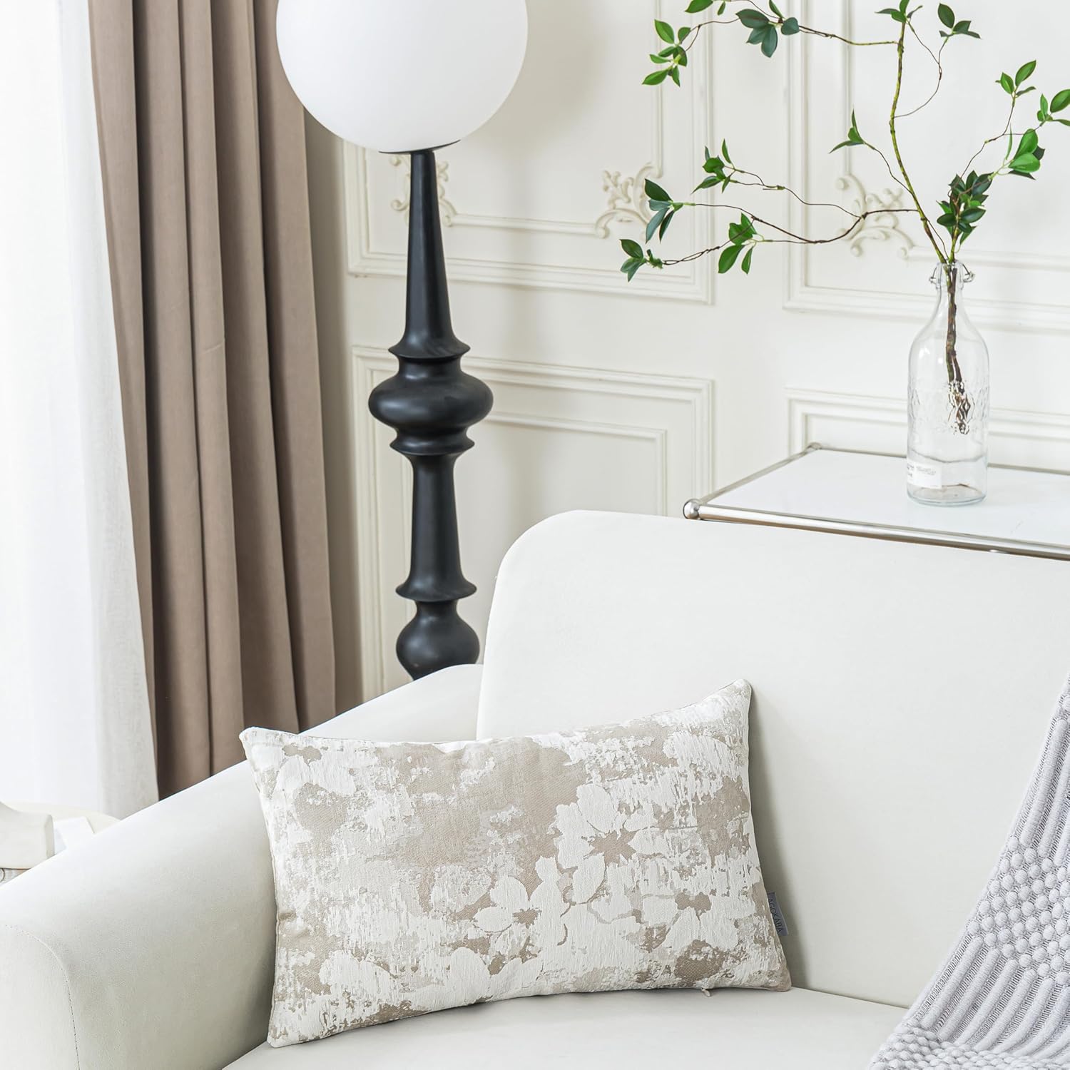 Jacquard Throw Pillow Covers 12x20 Inch Set of 2 - Vintage Floral Boho Pillow Cases with Botanical Pattern | Farmhouse Decor for Couch | Soft Textured Neutral Trio Light Khaki Warm Beige 12" x 20"