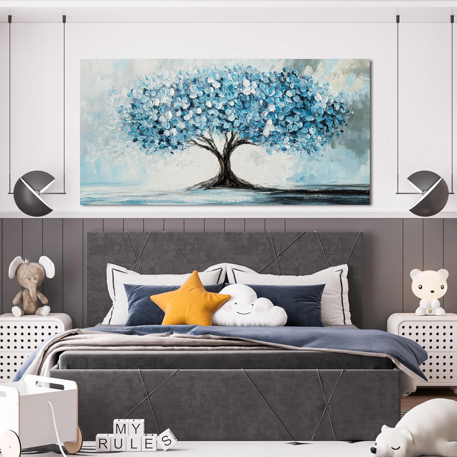 Canvas Wall Art Decor Canvas Art Wall Decor Tree of Life Wall Art Modern Blue White Wall Art Prints Large Artwork for Walls Wall Art Pictures for Living Room for Bedroom Office Decor 24" X 48"