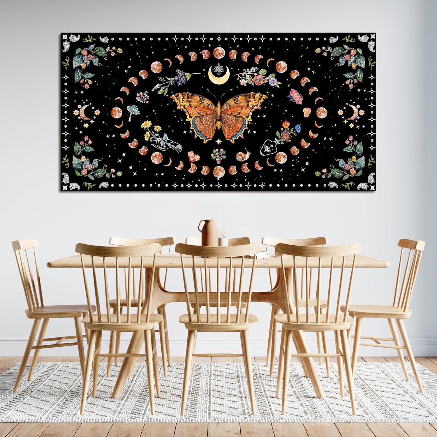 Large Canvas Wall Art Boho Wall art Decor Canvas Art Wall Decor Pictures for Living Room Vintage Butterfly Wall Art Decorations Moon Flower Artwork for Walls Bedroom Office Wall Decor 24" X 48"