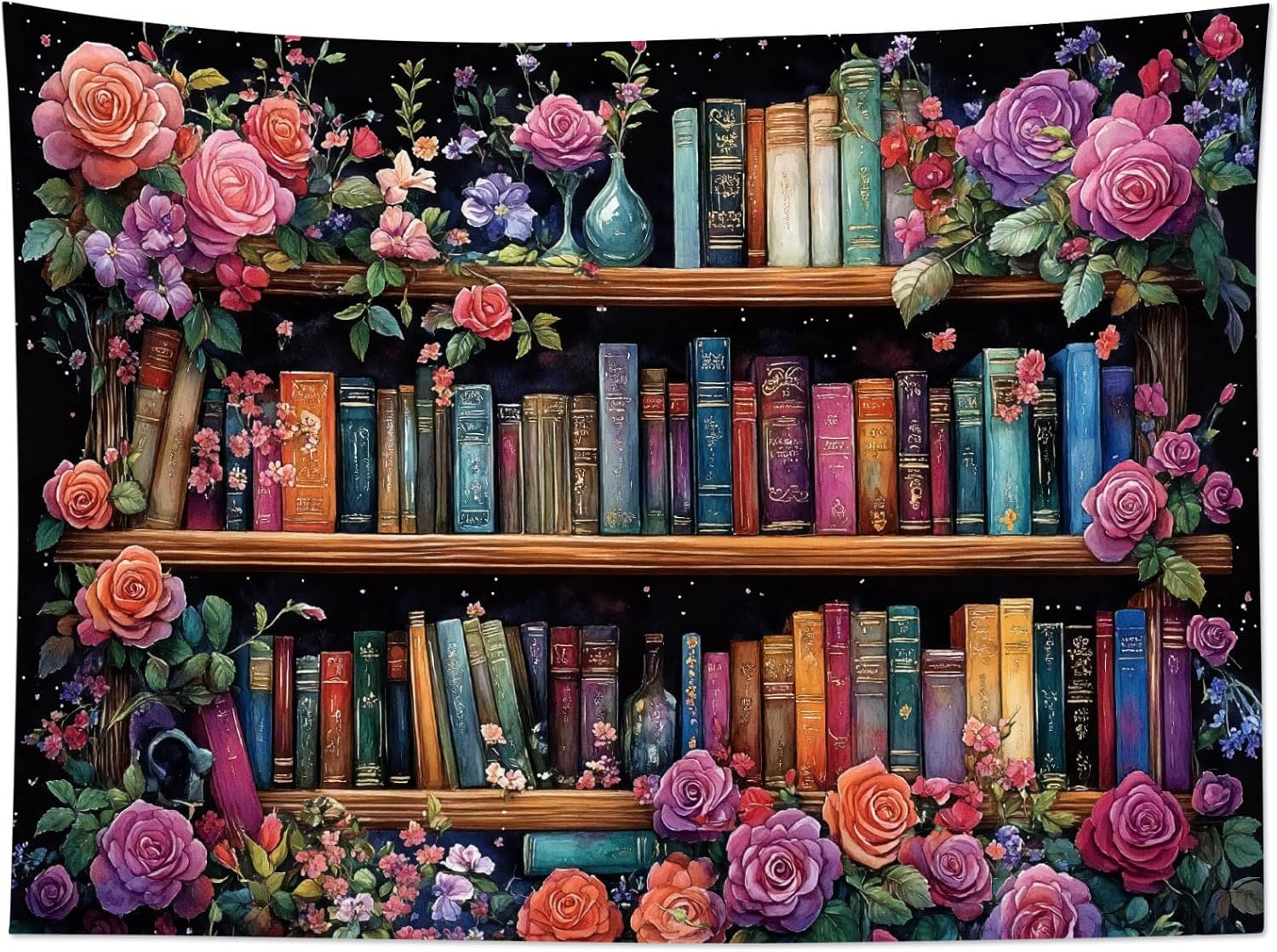 - DESIGN :The Bookshelf Floral Tapestry adopt HD digital printing,Don’t worry about fading,vibrant colorful design will light up your room!