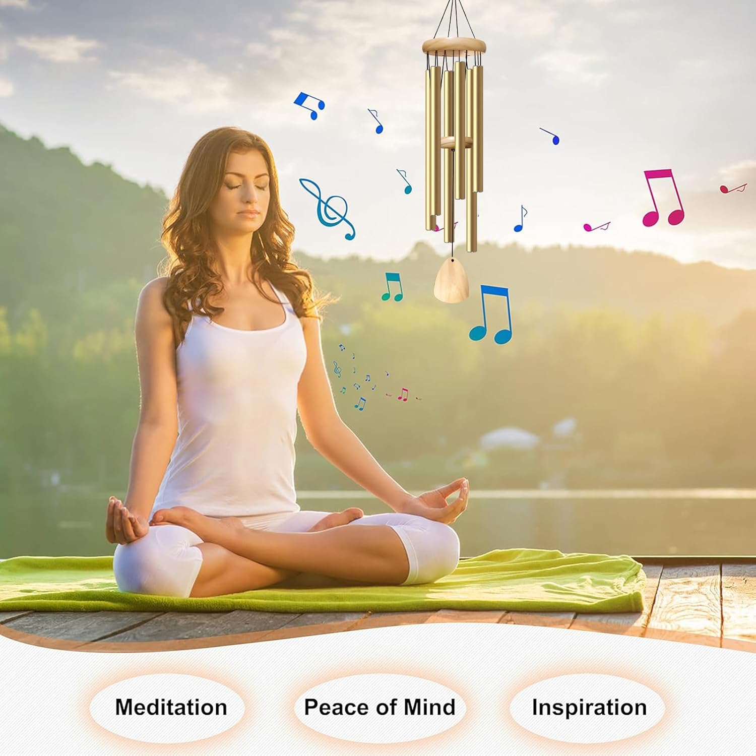 Large Aluminium Wind Chimes 37 Inches to Create a Zen Atmosphere Suitable for Outdoor, Garden, Patio Decoration. Classic Wind Chimes with Wind Catcher as a Gift for Unisex(Light Golden)