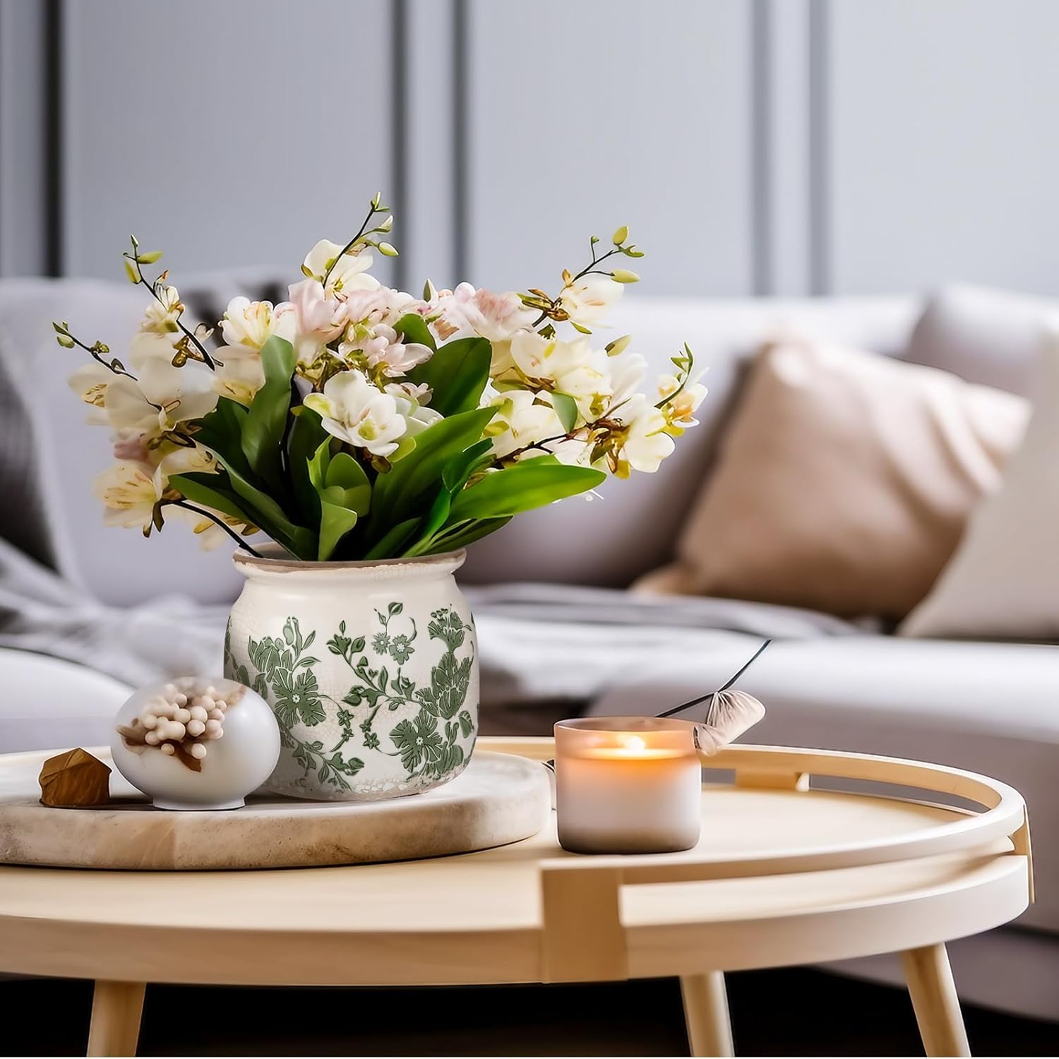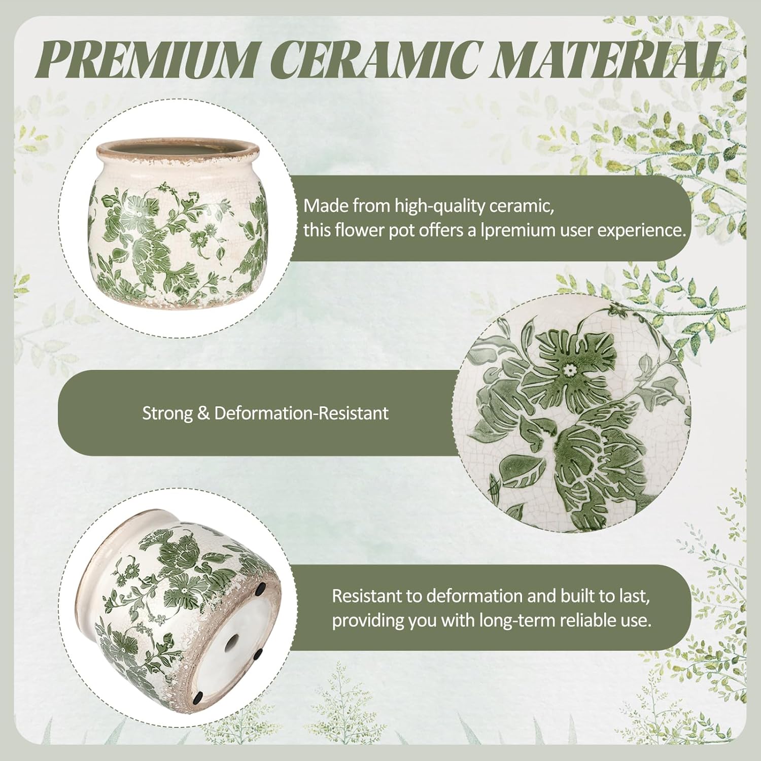 - Vintage Flower Pot: you will get 1 beige and green ceramic planter, which crafted with a distressed scroll pattern and crackle glaze finish, adding a rustic farmhouse vibe to both modern and traditional decor styles; Note: plants not included