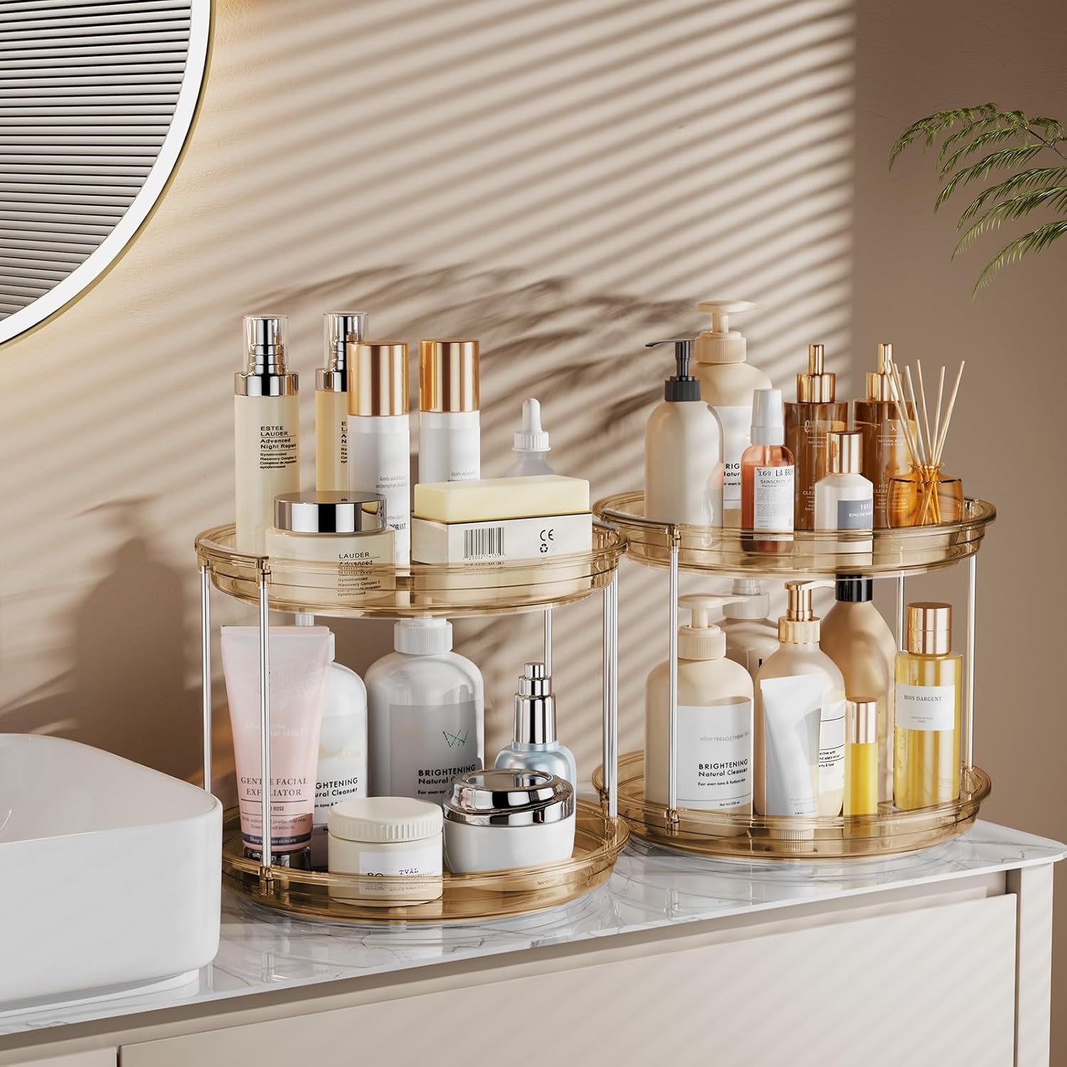 LAMU 2 Pack 2 Tier Lazy Susan Turntable Organizer 9.25'' Rotating Spice Rack Organization for Cabinet, Kitchen, Pantry, Countertop, Bathroom, Vanity, Medicine Cabinet Organizer, Amber