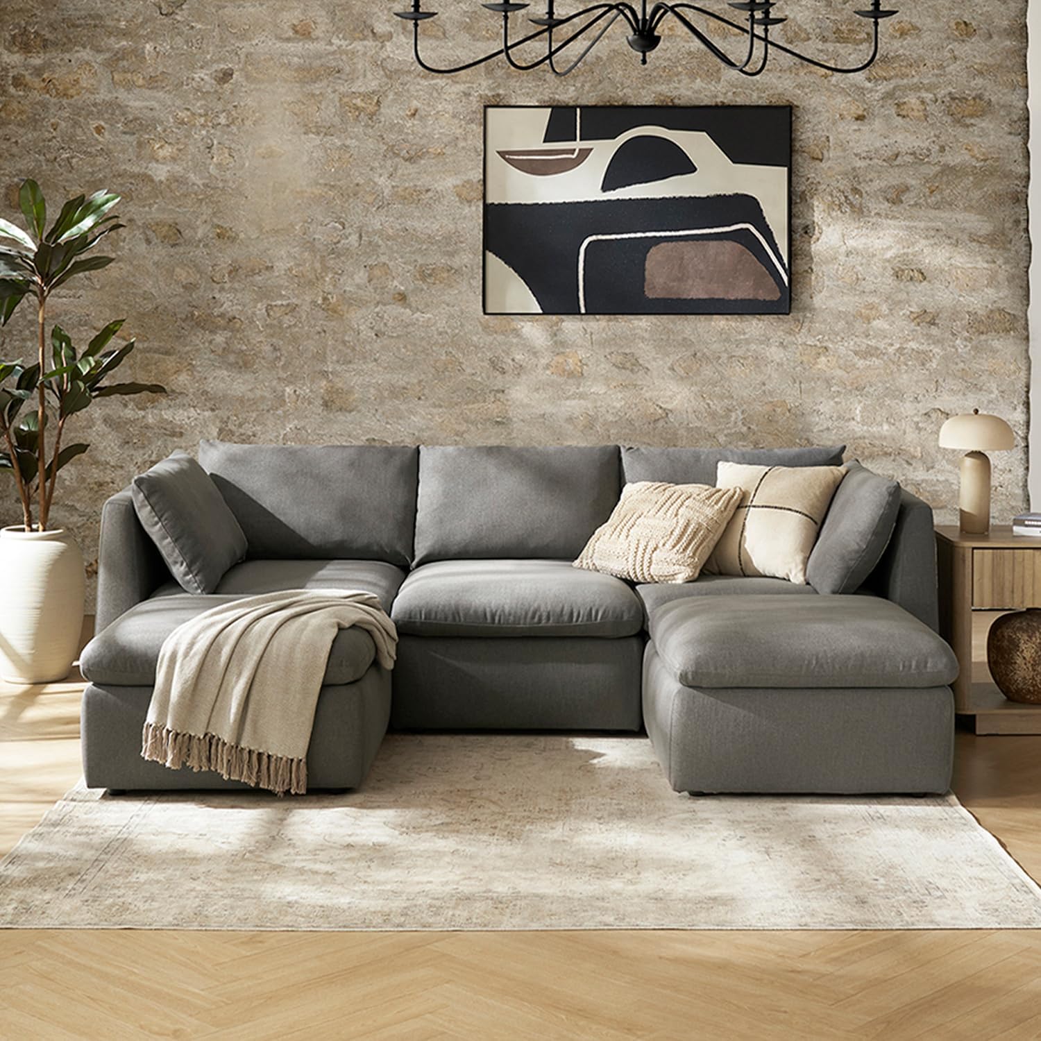 mopio Oversized Modular Sectional Sofa with Fully Removable Covers and Storage, Convertible U, L-Shaped and Sleeper Sectional, Modern Couches with Ottoman Chaise (Stone Gray Fabric, 5 Seats, U)