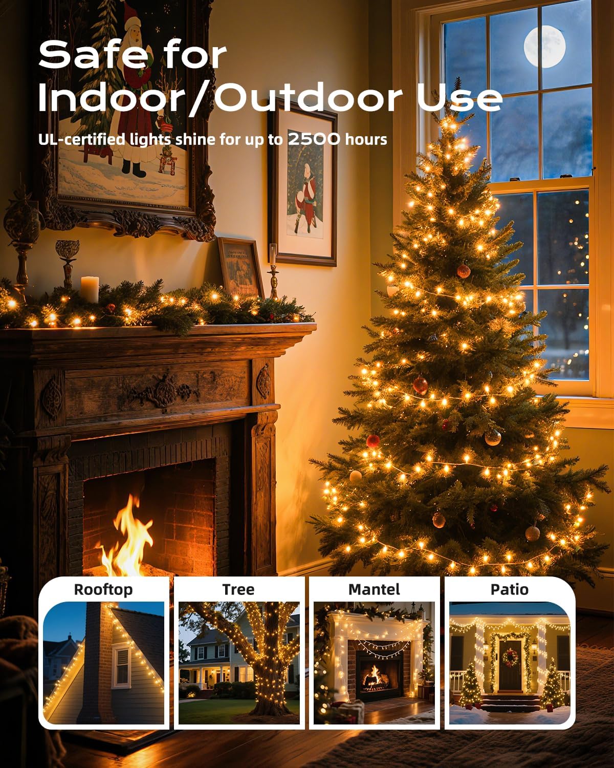 - 【Versatile Indoor and Outdoor Use】Coated with white wire, these 200-count Clear Christma tree fairy lights are suitable for both indoor and outdoor displays. Perfect for adding a festive touch to patios, bedrooms, and seasonal decorations;