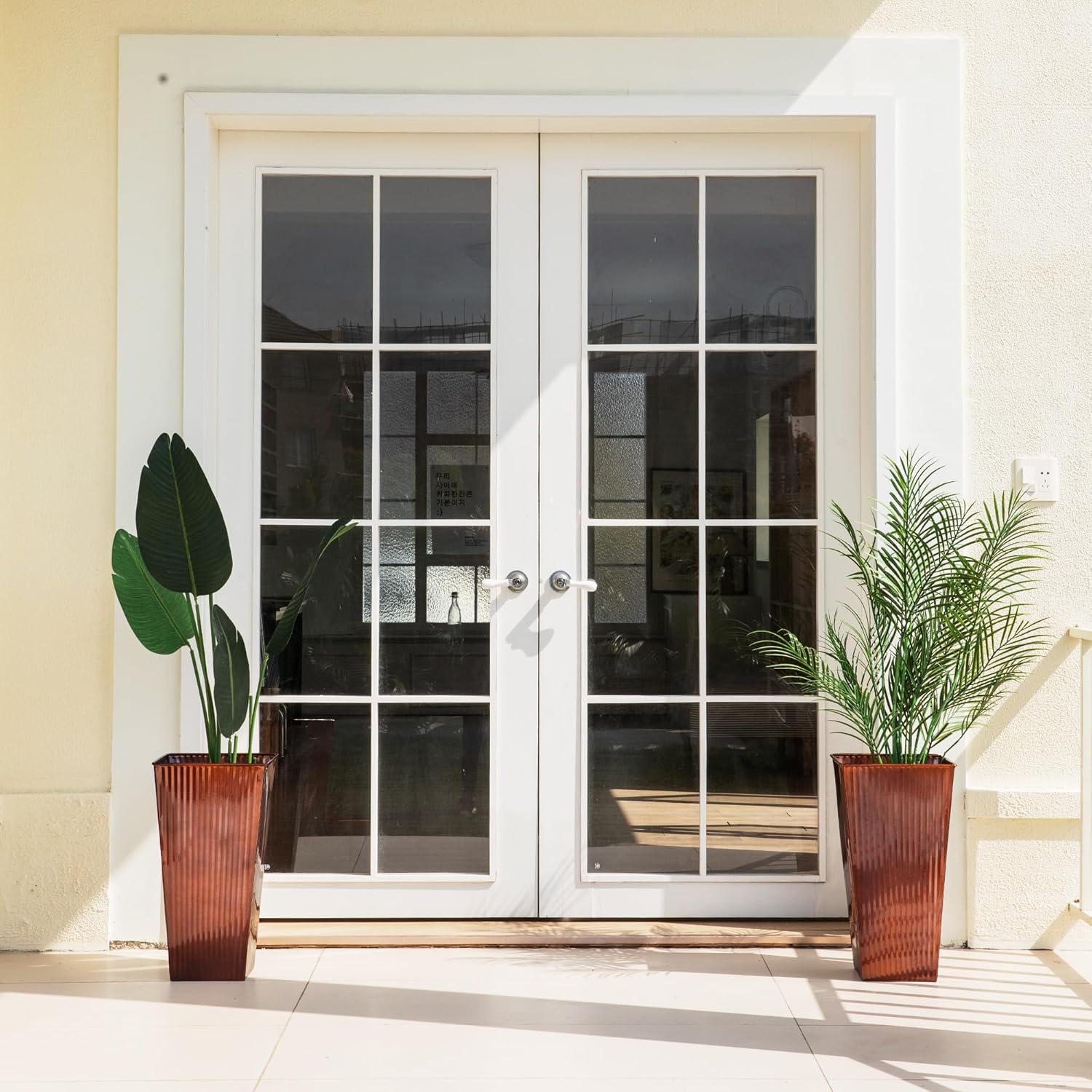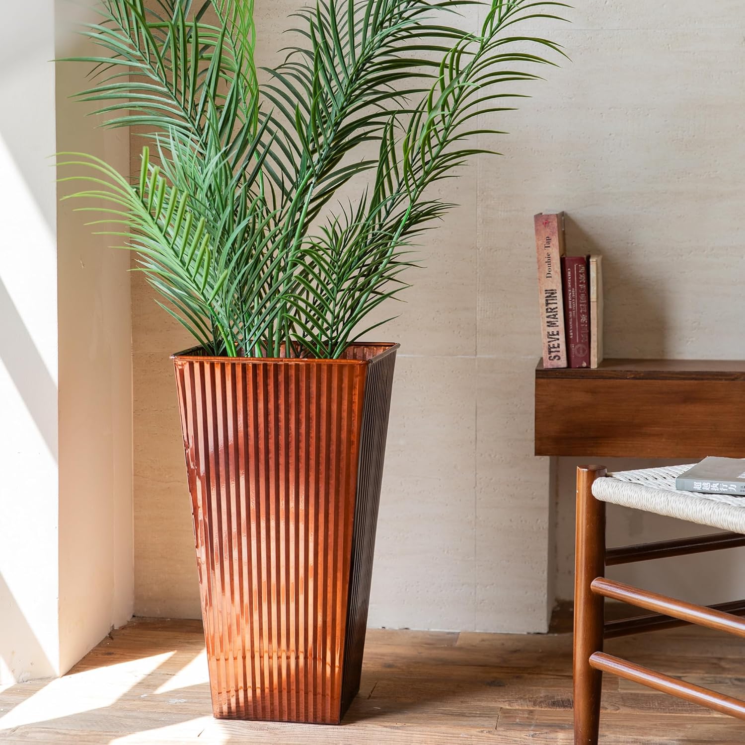 - DIMENSIONS: Large 22-inch tall copper planters measure 14 inches wide and deep, perfect for statement plants and outdoor displays