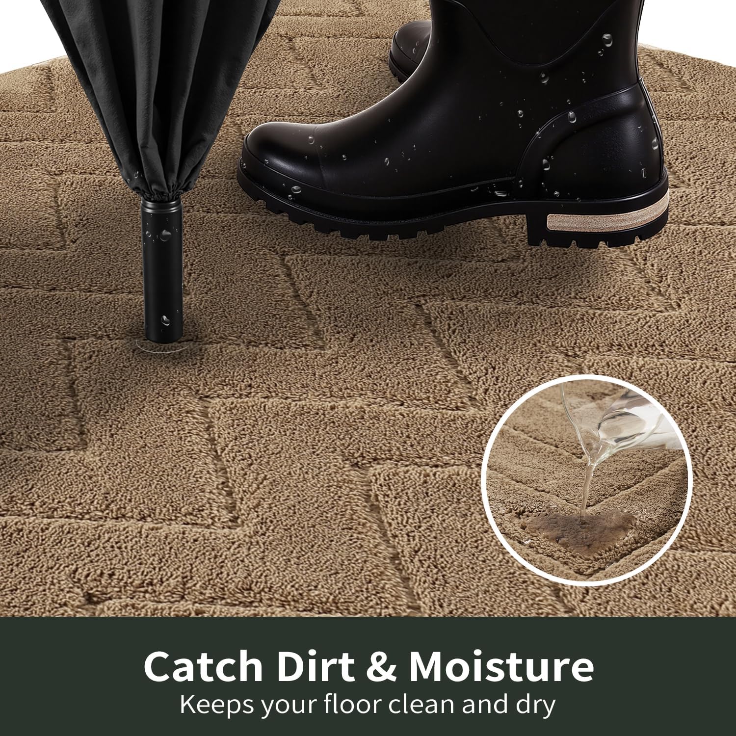 - Catch Dirt & Moisture: Made of soft and absorbent fiber, it effectively trap moisture and debris from wet shoes or muddy paws, keeping your floors clean dry, and safe—especially on rainy or snowy days. We recommend choosing the largest mat that fits your space