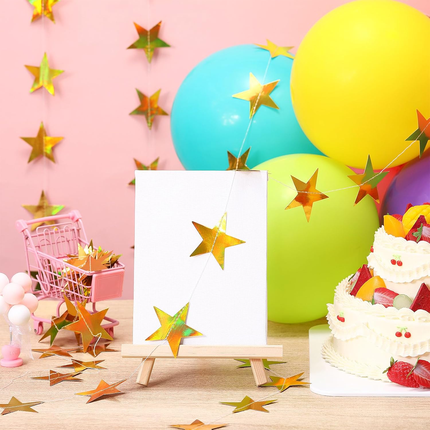 Patelai Glitter Star Garland Banner Decor 130 Feet Star Hanging Bunting Banner Twinkle Backdrop for Homecoming Classroom Wedding Birthday Halloween Christmas Party Supplies(Iridescent Gold)