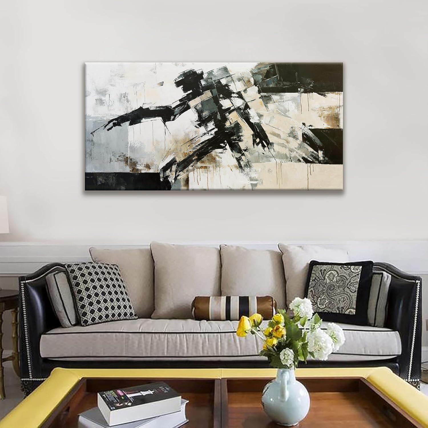 TAIJXAGSG Modern Wall Art Minimalist Abstract Wall Art Prints Painting Cool Robot Black White Canvas Art Wall Decor Picture For Bedroom Office Living Room Home Wall Decor 24"X48"
