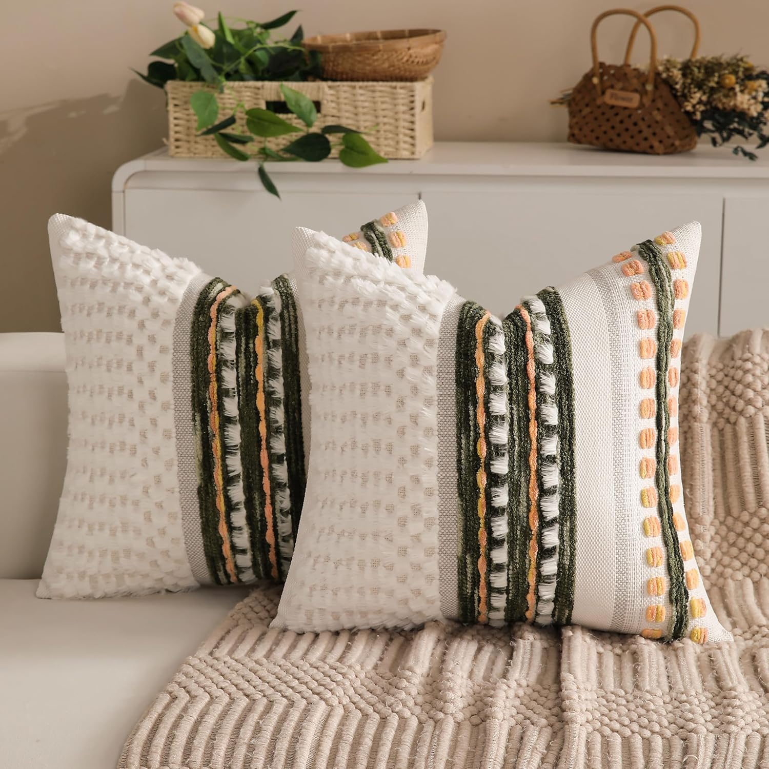 - SET OF 2 & PERFECT SIZE: This set includes two 18x18-inch throw pillow covers (inserts not included), ideal for standard throw pillows. The neutral color palette ensures easy coordination with various home styles, from modern farmhouses to bohemian chic.