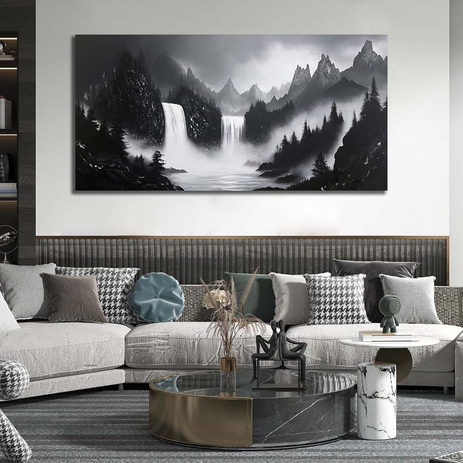 - 【Canvas Mural Size】Titled "Black and White Waterfall" The size is 72" x 36". Since each painting is hand-painted, the actual painting may differ slightly from the product image. Due to different monitor brands, the actual wall painting color may be slightly different from the product picture.