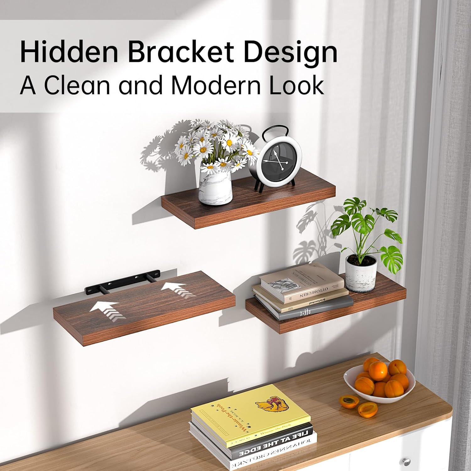 - 𝐒𝐭𝐫𝐨𝐧𝐠 𝐋𝐨𝐚𝐝 𝐂𝐚𝐩𝐚𝐜𝐢𝐭𝐲 – Made from 𝐝𝐮𝐫𝐚𝐛𝐥𝐞 𝐞𝐧𝐠𝐢𝐧𝐞𝐞𝐫𝐞𝐝 𝐰𝐨𝐨𝐝 and reinforced with sturdy brackets, each shelf 𝐬𝐮𝐩𝐩𝐨𝐫𝐭𝐬 𝐮𝐩 𝐭𝐨 𝟐𝟐 𝐥𝐛𝐬, making them 𝐢𝐝𝐞𝐚𝐥 𝐟𝐨𝐫 𝐛𝐨𝐨𝐤𝐬, 𝐩𝐥𝐚𝐧𝐭𝐬, 𝐭𝐨𝐢𝐥𝐞𝐭𝐫𝐢𝐞𝐬, 𝐨𝐫 𝐝𝐞𝐜𝐨𝐫