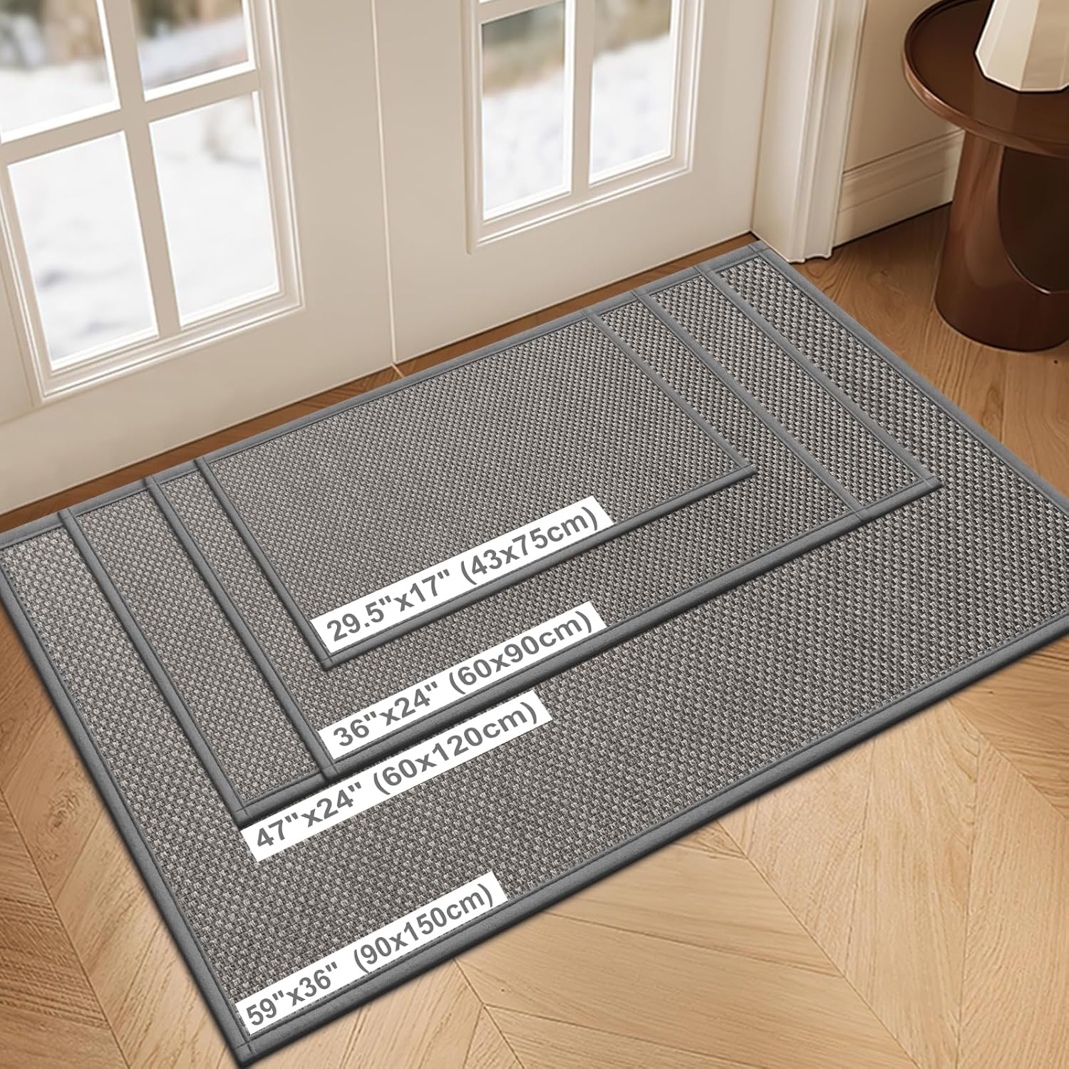 LEKEEPGO Door Mat 36"x59", Non Slip Door Mat Indoor Entrance, Rubber Backing Front Indoor Door mat Washable Absorbent Low-Profile Entryway Entry Resist Dirt Inside Door Mats, Light Grey