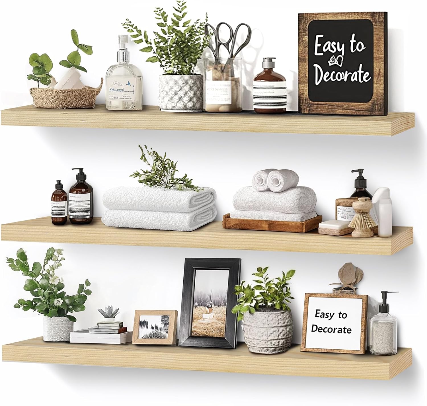 - Multi-Functional and Sturdy: These wood wall shelves are built to hold heavier items securely, making them perfect for organizing your space while enhancing the overall aesthetic