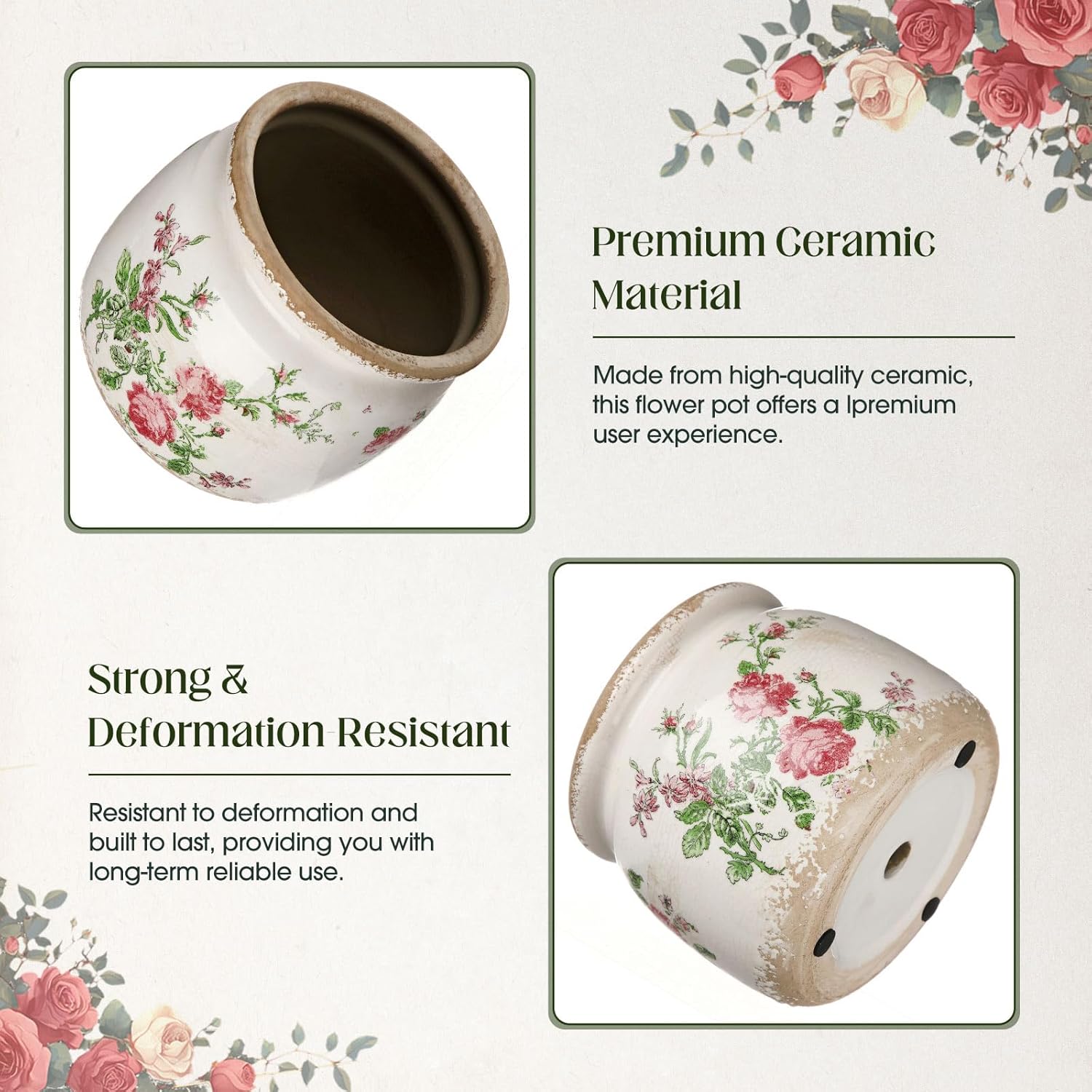 - Vintage Flower Pot: you will get 1 beige ceramic planter, which crafted with a distressed scroll shaped and French rose pattern, adding a rustic farmhouse vibe to both modern and traditional decor styles; Note: plants not included