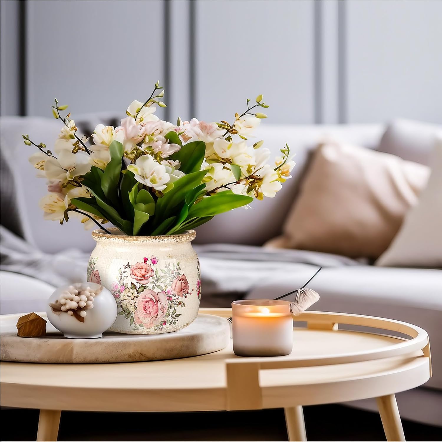 - Vintage Flower Pot: you will get 1 beige and orange ceramic planter, which crafted with a distressed scroll shape and European rose pattern, adding a rustic farmhouse vibe to both modern and traditional decor styles; Note: plants not included