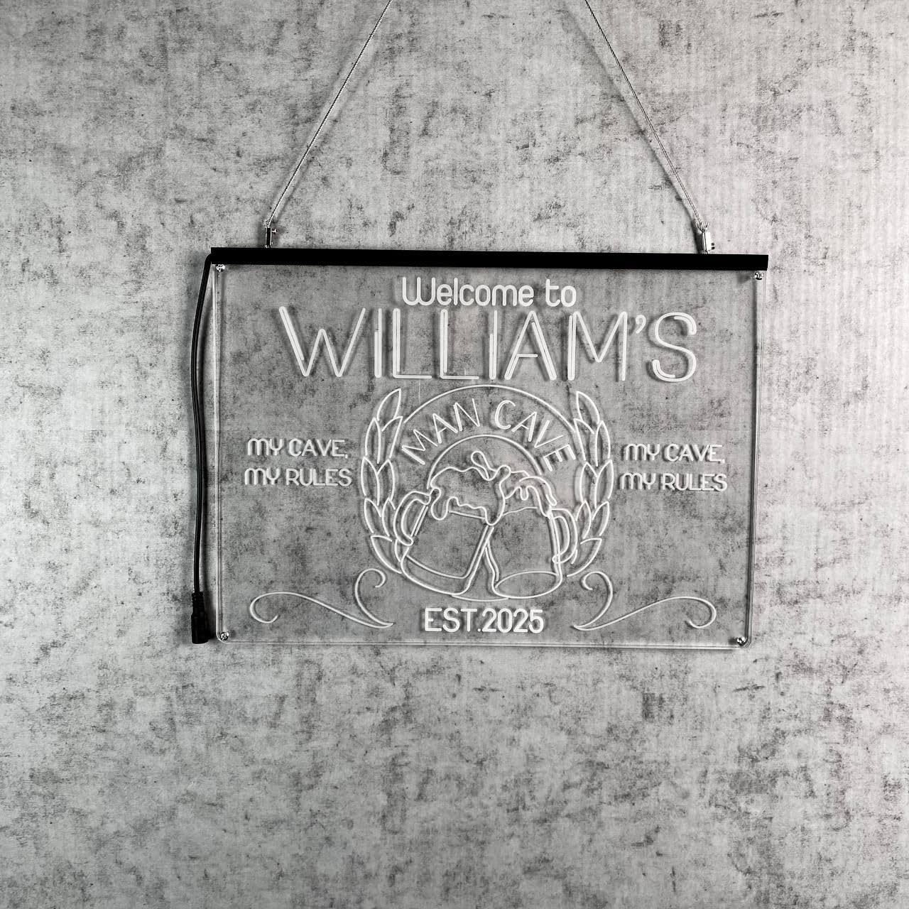 - Personalized bar signs for home bars using lighted mica LED, plug & glow. Each custom bar neon sign features durable mica and LED. Powered by a 2A, 12V source—just plug in and enjoy. Your personalized bar sign lights up instantly, no controller needed.