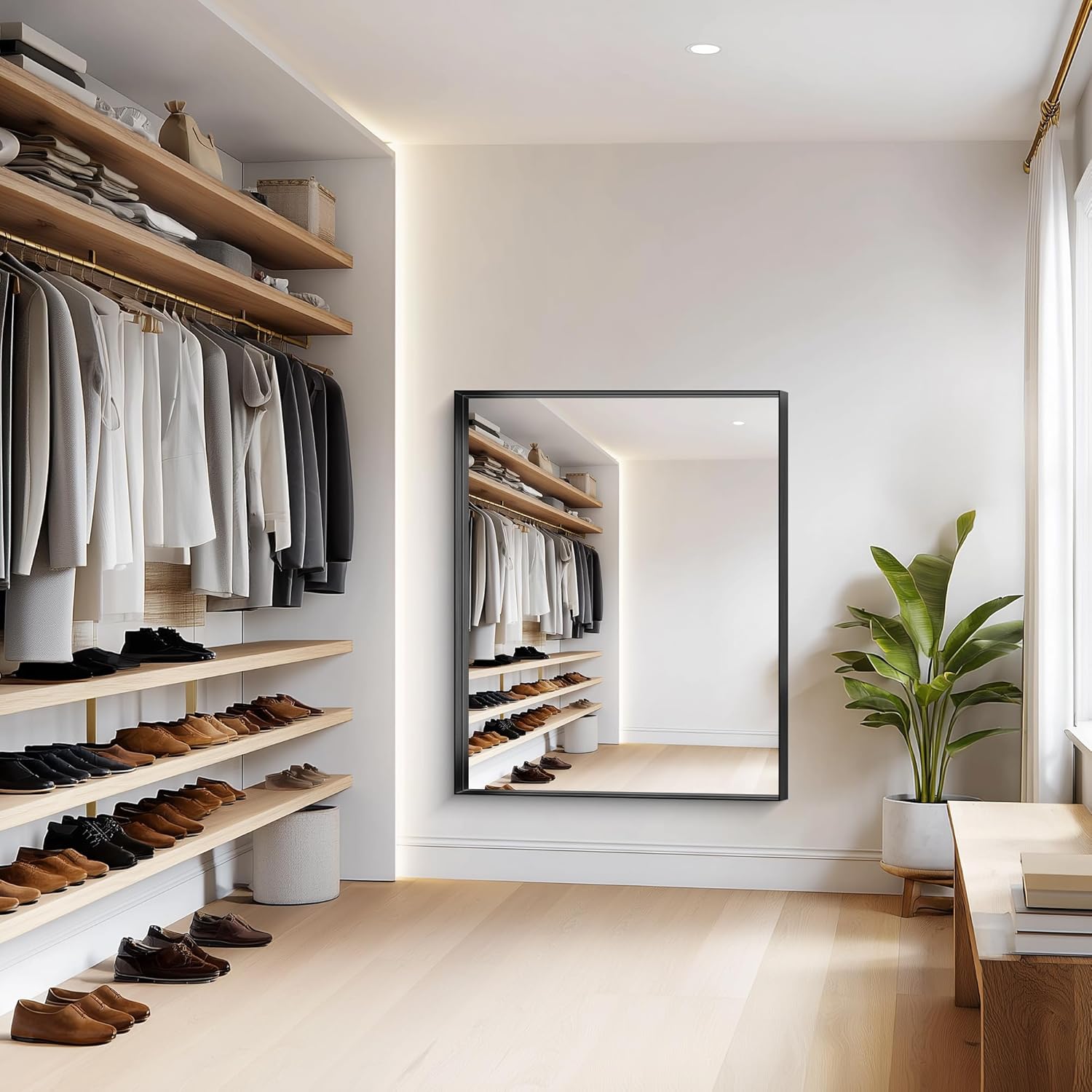 - Sleek & Sturdy Aluminum Alloy Frame: This elegant black bathroom mirror features a lightweight yet durable aluminum alloy frame, designed to resist deformation, chipping, and corrosion. The slim metallic profile adds a modern touch, elevating your space with a luxurious finish. Perfect as a wall-mounted or hanging mirror, it combines strength, style, and longevity.