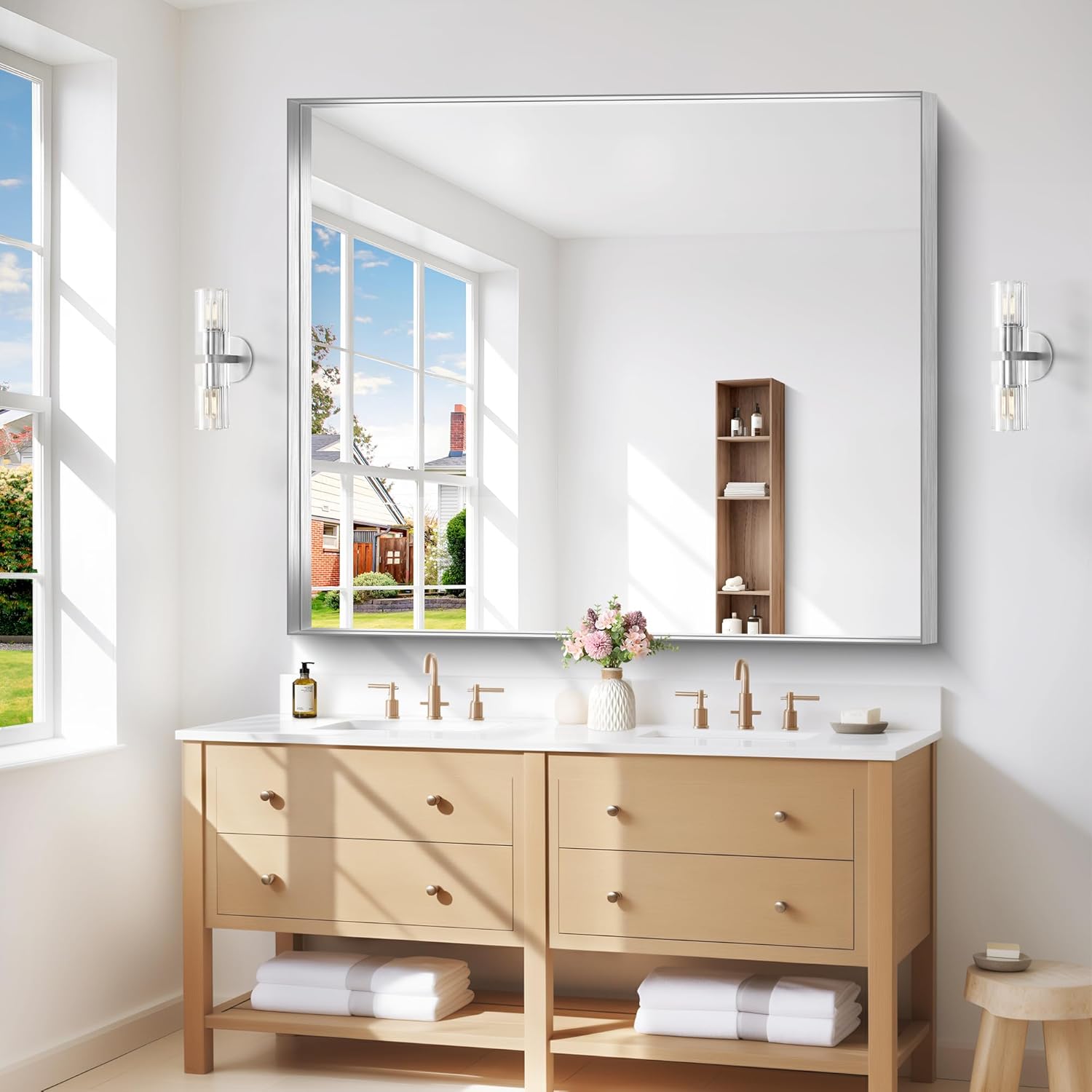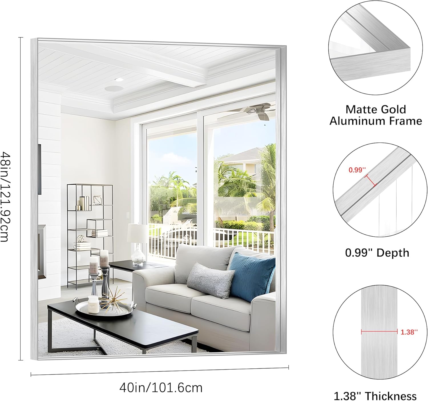 Silver Bathroom Mirror, 40x48 Inch Rectangular Framed Mirror, Large Wall Mounted Bathroom Vanity Mirror Over Sink for Bedroom,Restroom, Living Room, Hangs Vertically or Horizontally