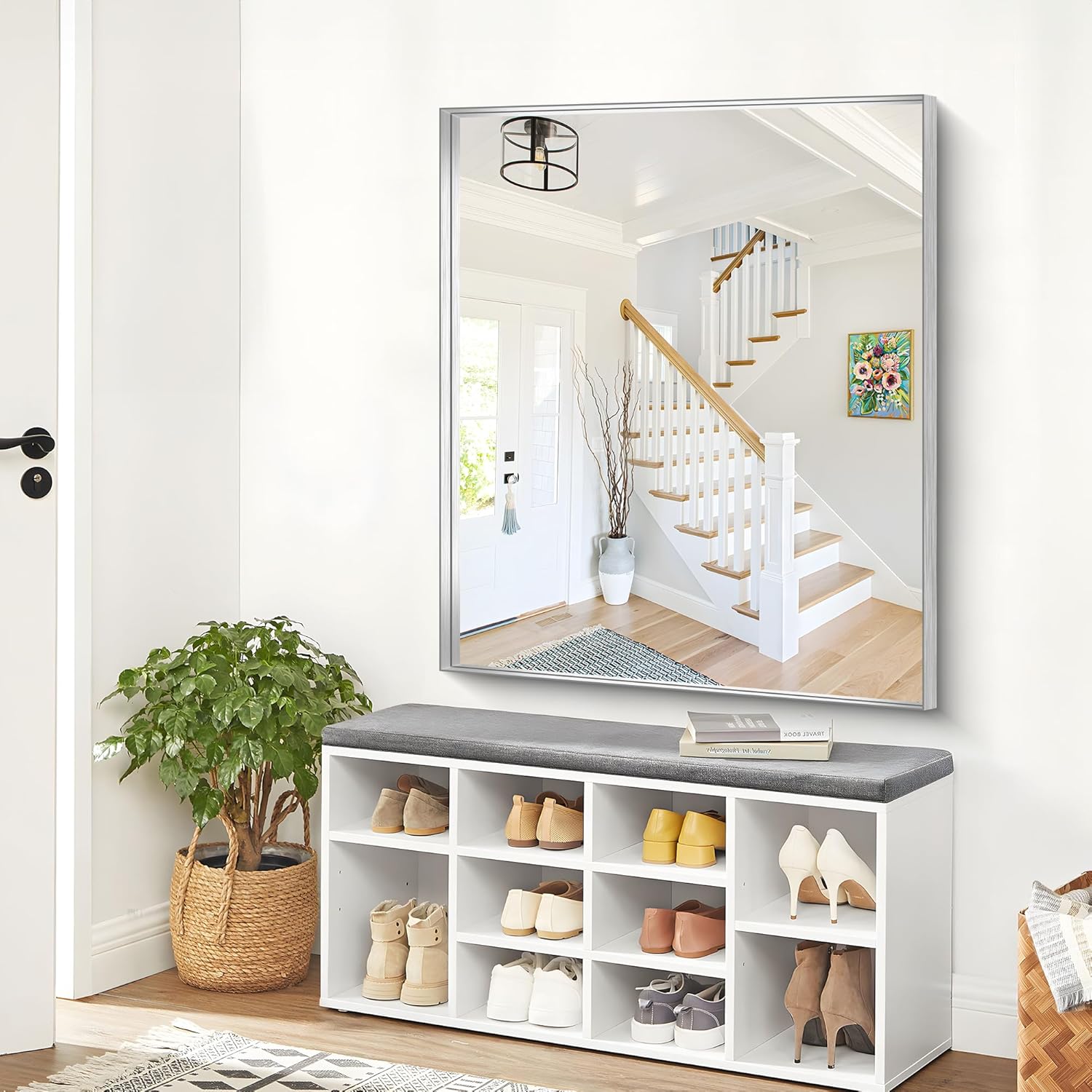 - Sleek & Sturdy Aluminum Alloy Frame This elegant silver bathroom mirror features a lightweight yet durable aluminum alloy frame, designed to resist deformation, chipping, and corrosion. The slim metallic profile adds a modern touch, elevating your space with a luxurious finish. Perfect as a wall-mounted or hanging mirror, it combines strength, style, and longevity