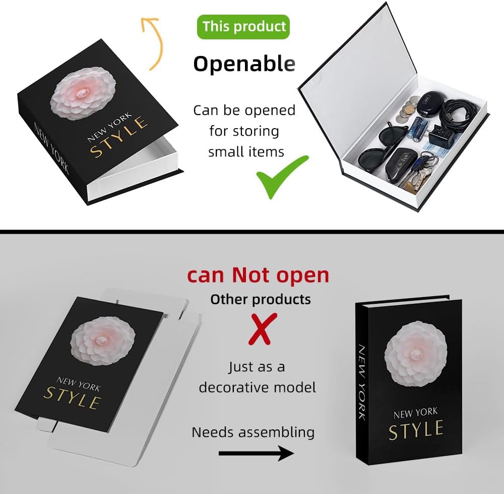 - Realistic Faux Book Design Crafted to mimic real hardcover books with detailed spines and vintage patterns, this decorative storage box blends seamlessly into your bookshelf or coffee table for hidden organization.