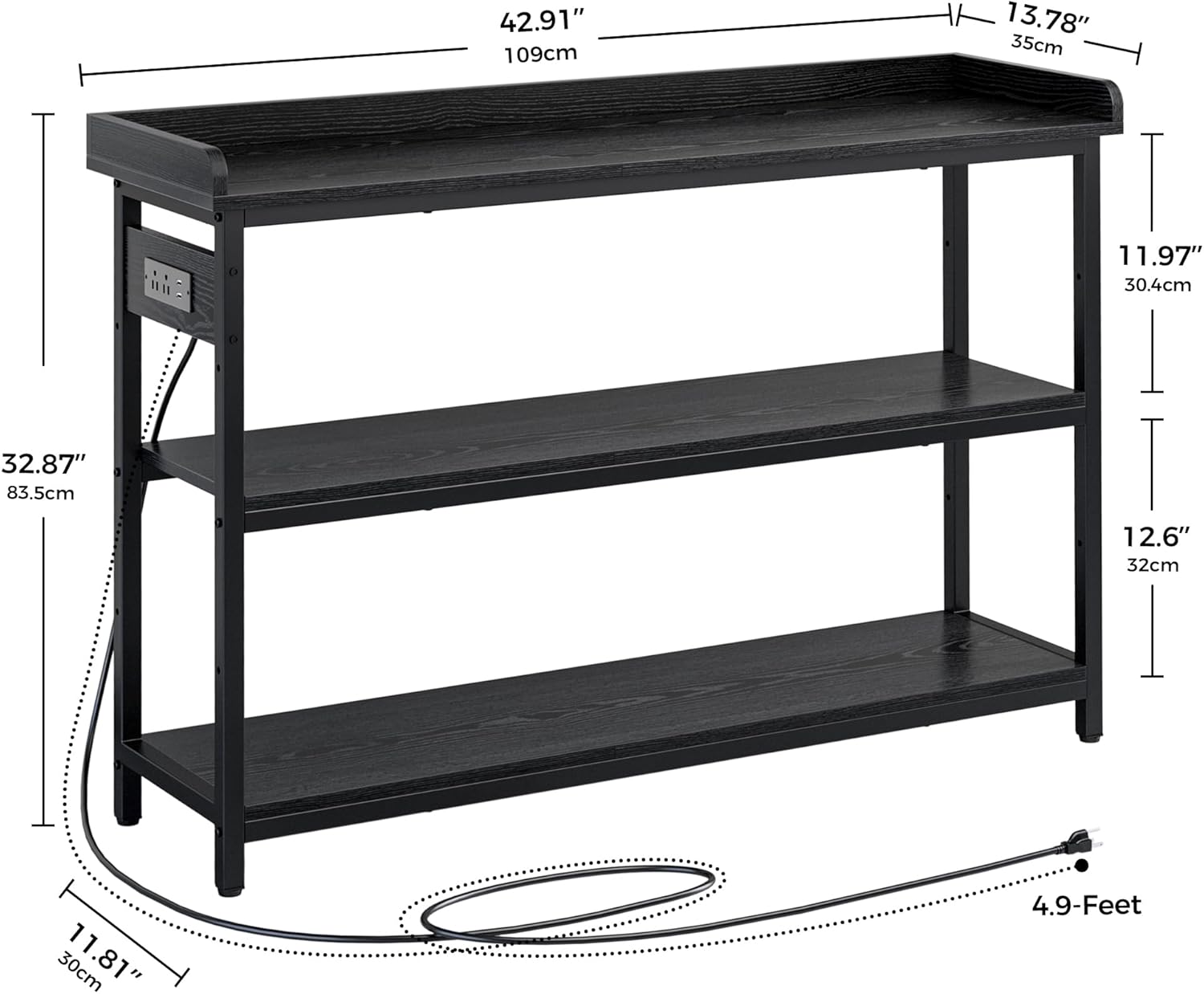 - Narrow Console Table with Charging Station: With two outlet plugs and two USB ports built in , IRONCK sofa table allows you to charge your phone, tablet, laptop, and lamps within easy reach.The outlet could be settled on the left or right side