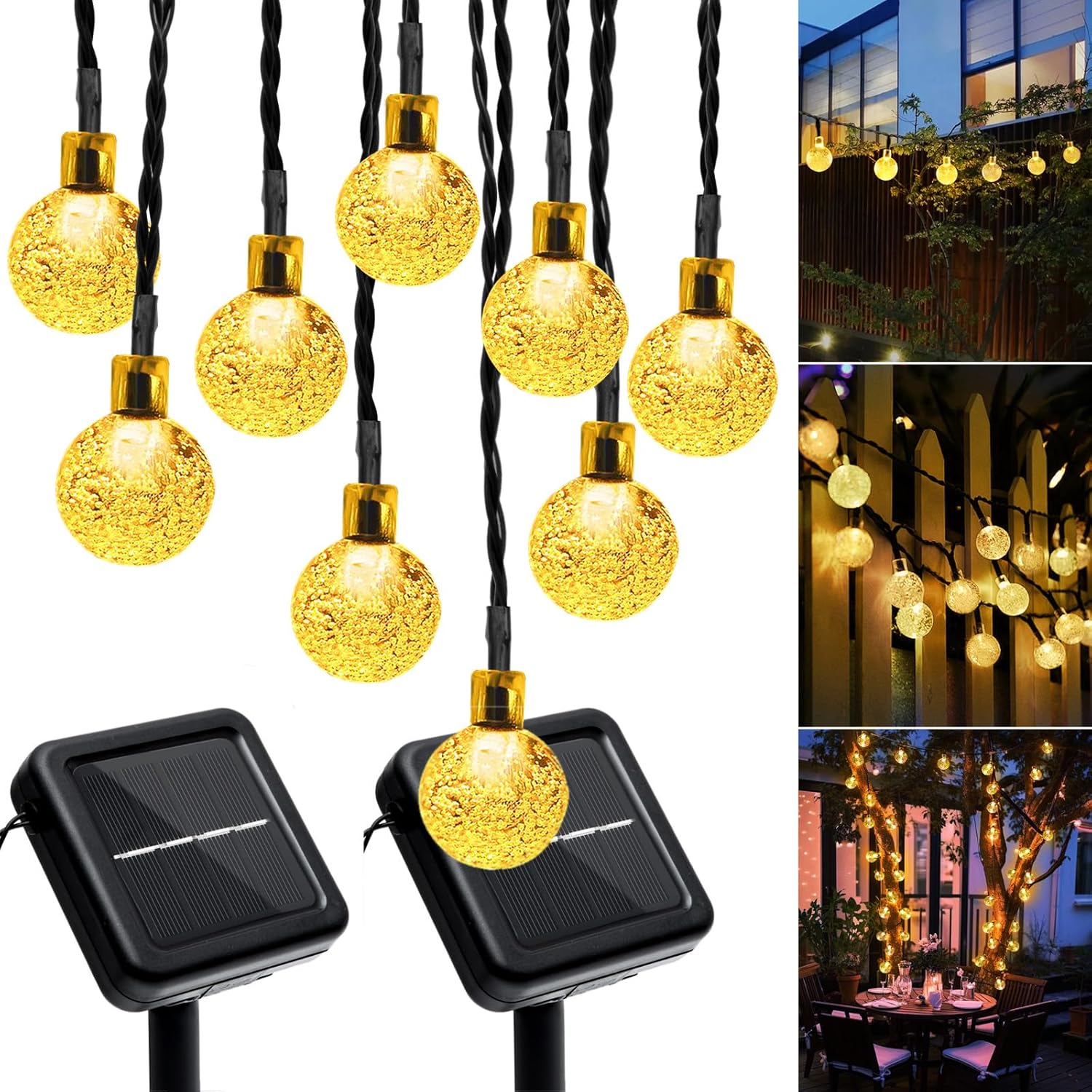- 【New Generation - 2x46FT 66LEDs Crystal Globe Solar String Lights】Solar string lights outdoor waterproof is made of IP65 Waterproof material, which can withs stand all kinds of extreme weather. Each light has 66 bright LED Crystal Globe bulbs,total lenth 46FT,the diameter of each Crystal Globe is 2.3cm/0.9inch.