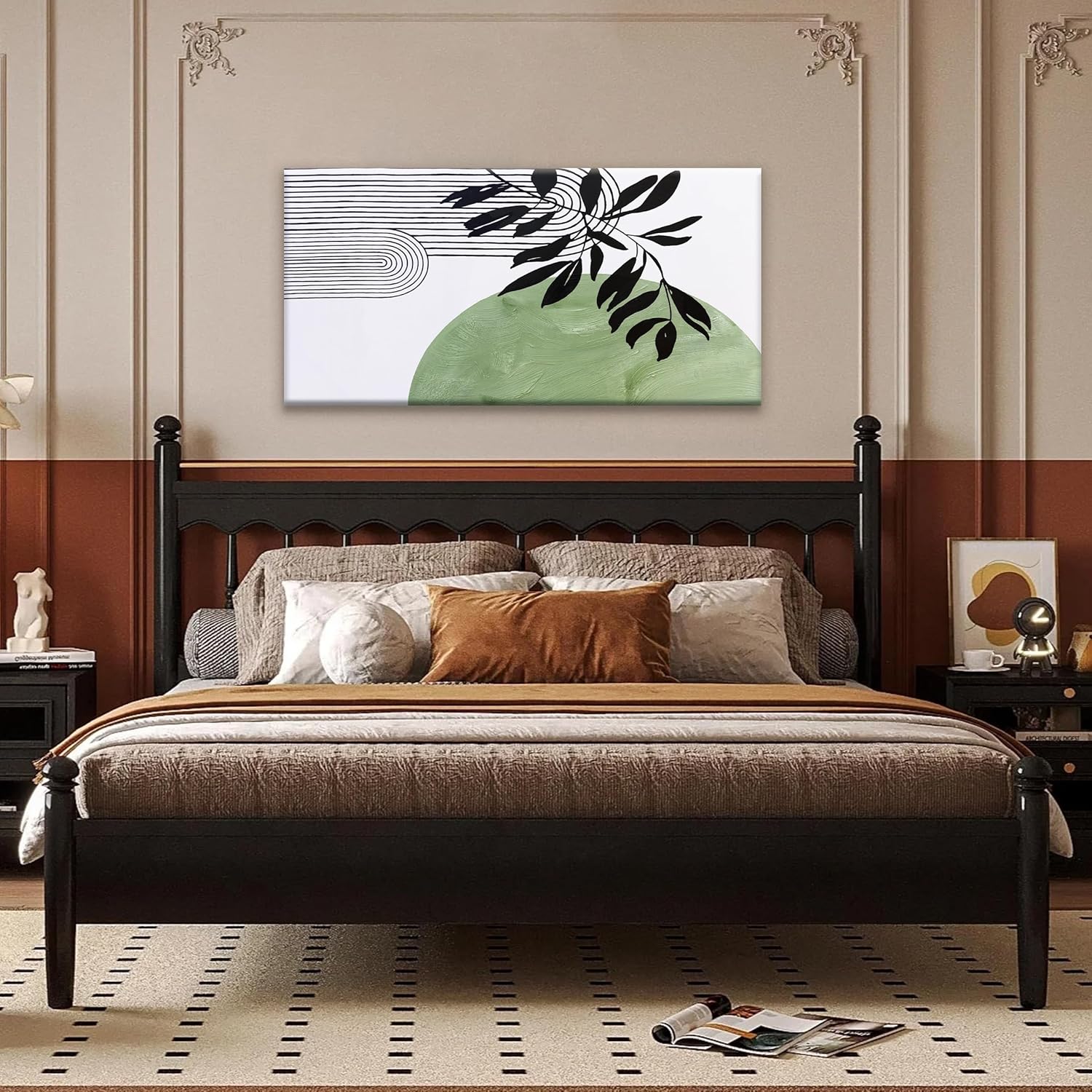 TAIJXAGSG Abstract Boho Green Wall Art Modern Canvas Art Wall Decor Artwork Abstract Wall Decor Minimalist Canvas Painting Prints Picture For Bedroom Bathroom Office Wall Artwork 20"X40"