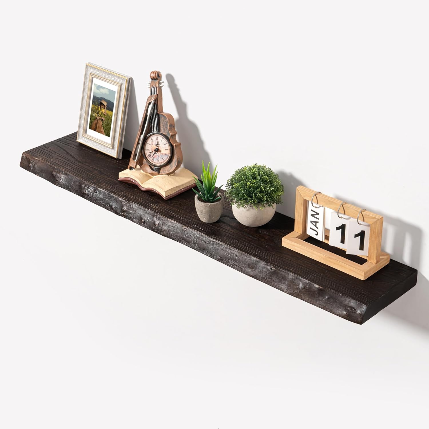 - Beautiful Live Edge: Axeman wall shelves feature real live edge wood, making each one unique and visually interesting. The irregularly curved edges add a touch of character to any space
