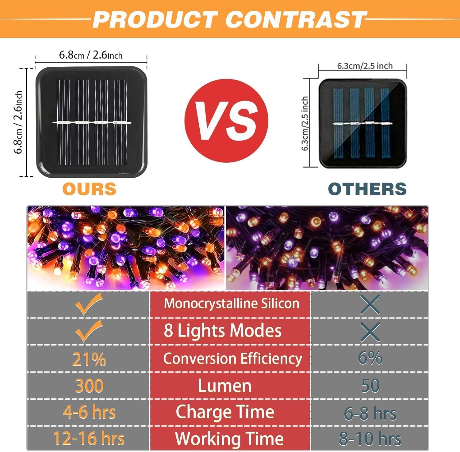 - 【Versatile Outdoor/Indoor String Lights】Solar Halloween string lights with a total of 6 strings allow you to be more flexible with your imagination and can be easily installed wherever you need to decorate. The solar lights can be molded into various shapes for gardens, patios, trees, porches, roofs, fences, bistros, restaurants, hotels, commercial buildings. It can also be used for parties, Halloween and New Year parties to create a warm and joyful holiday atmosphere.