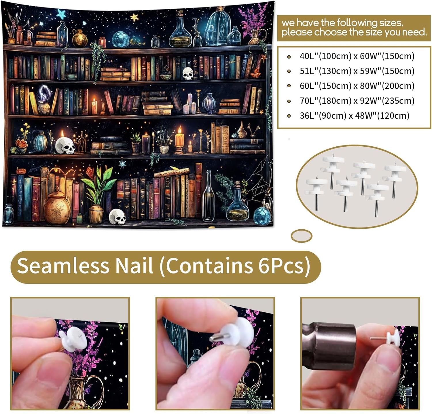 - DESIGN :The Magic Bookshelf Tapestry adopt HD digital printing,Don’t worry about fading,vibrant colorful design will light up your room!
