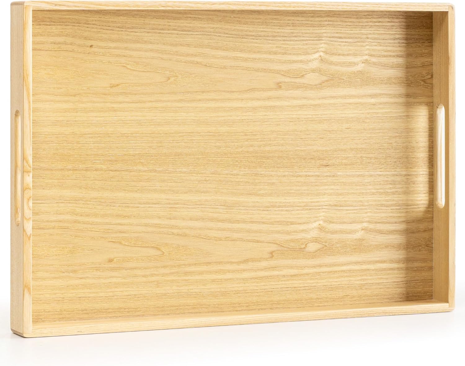 Axeman Wooden Serving Tray with Wood Handles|Ottoman Tray for Breakfast, Bed, Couch|17x12in Ash Wood Coffee Table Trays|Food Drinks Decorative Storage Boards for Ottoman Kitchen, Natural