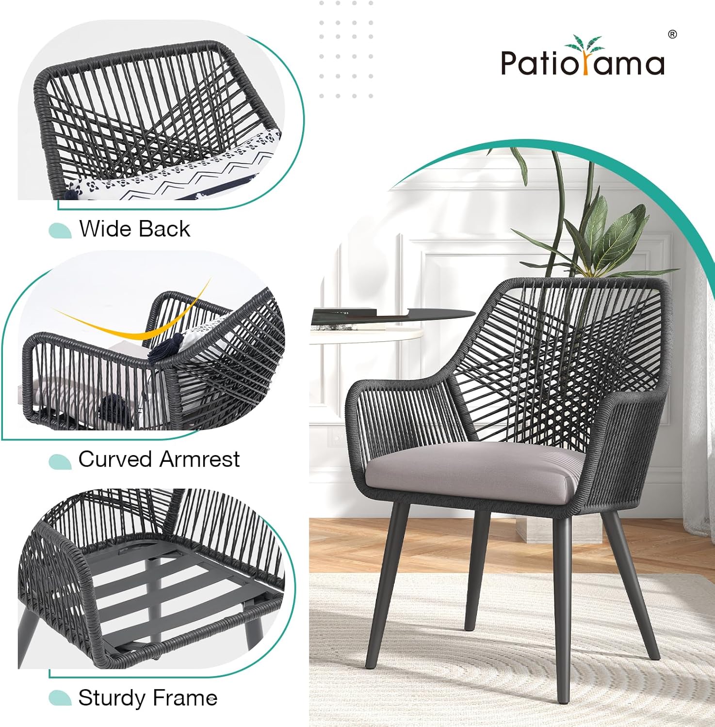 Patiorama Patio Dining Chair Set of 6, Woven Rope Outdoor Dining Chairs w/Steel Frame, All-Weather Twisted Rattan Chairs w/Armrest & Cushion, Outdoor Dining Wicker Chairs for Backyard Garden(Black)