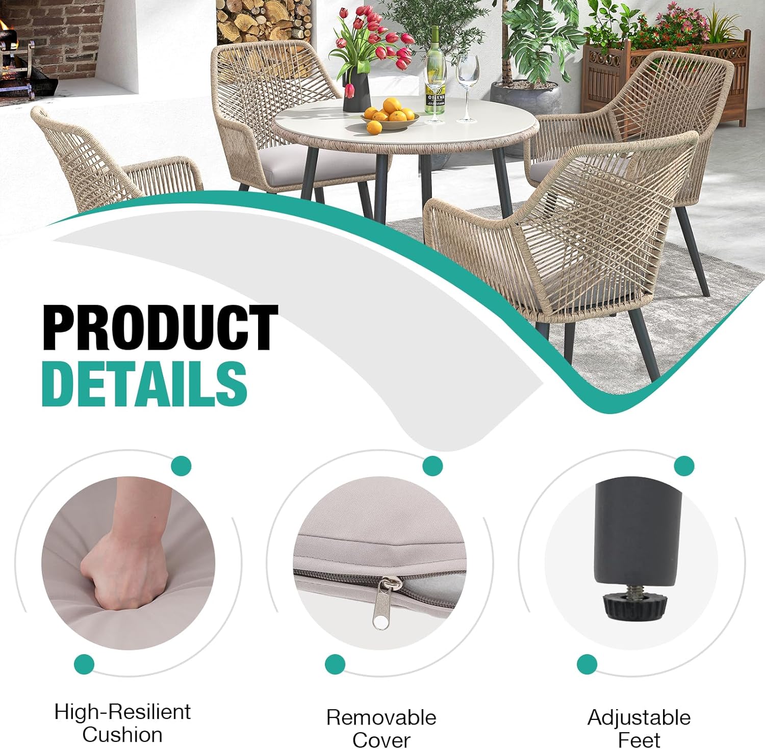 Patiorama Patio Dining Chair Set of 4, Woven Rope Outdoor Dining Chairs w/Steel Frame, All-Weather Twisted Rattan Chairs w/Armrest & Cushion, Outdoor Dining Wicker Chairs for Backyard Garden(Beige)