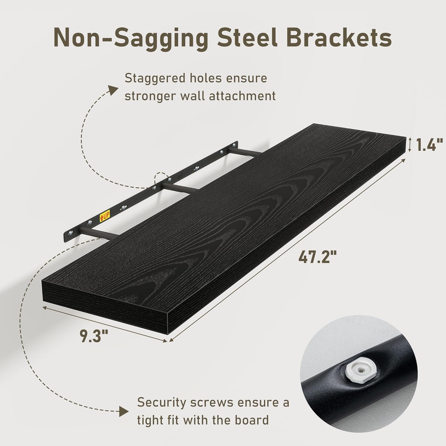 - Easy To Assemble: This floating shelves not only come with stainless-steel galvanized invisible brackets, but also equipped a fixing screw at the bottom to fix the shelf on the support rod, which solves the problem of sliding and is not easy to damage, and can be used for a long time. Instructions, magnetic level, drywall anchors, and screws included. This is great because you can easily mount these rustic shelves Gap-Free to any surface in less than 10 minutes